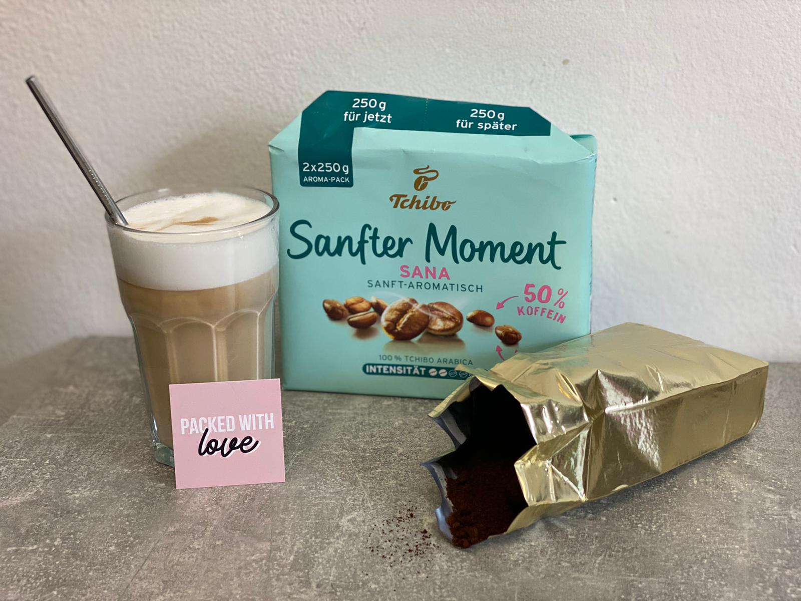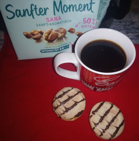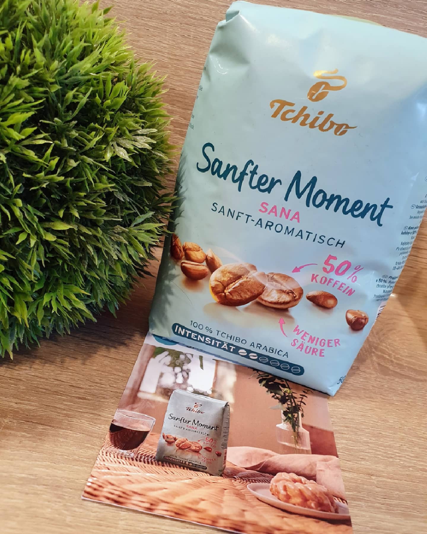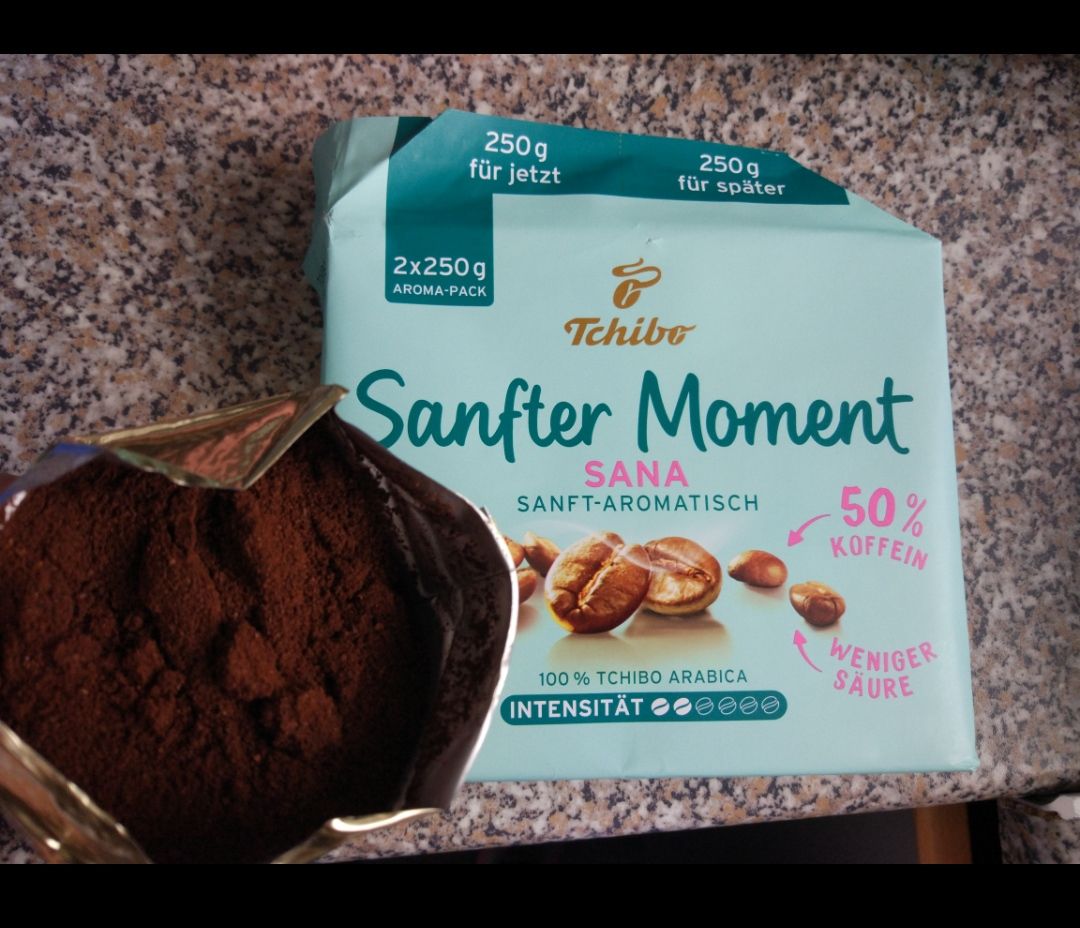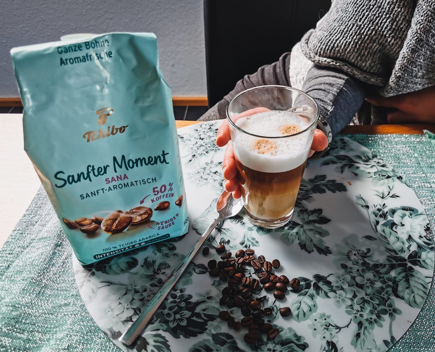 Der Kaffee "Sanfter Moment" von Tchibo schmeckt wie der Name es schon vermuten lässt sehr leicht und das Koffein ist auch nicht zu stark.