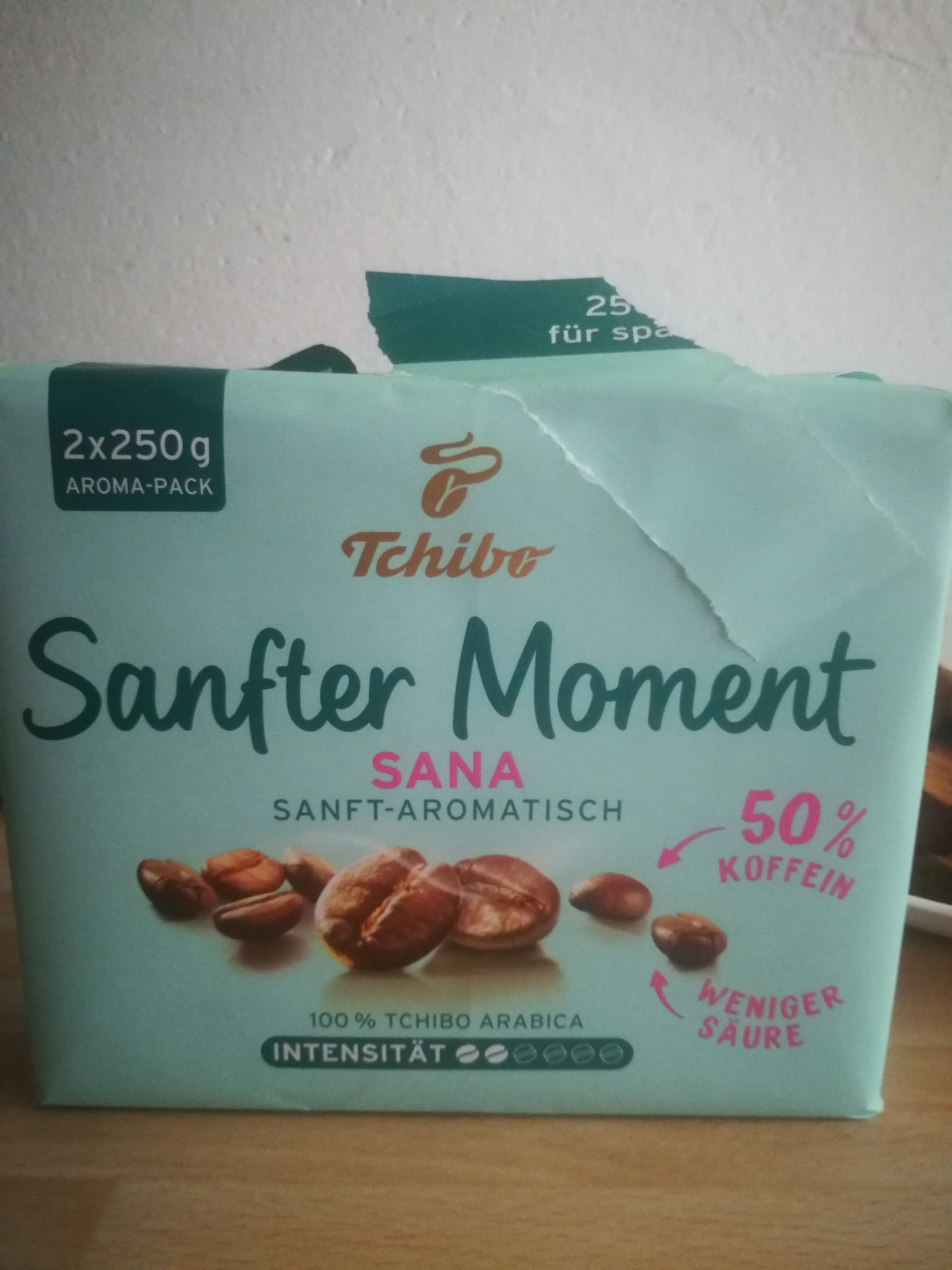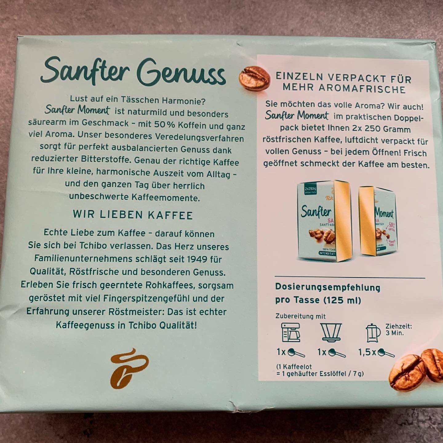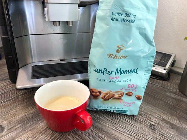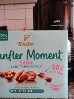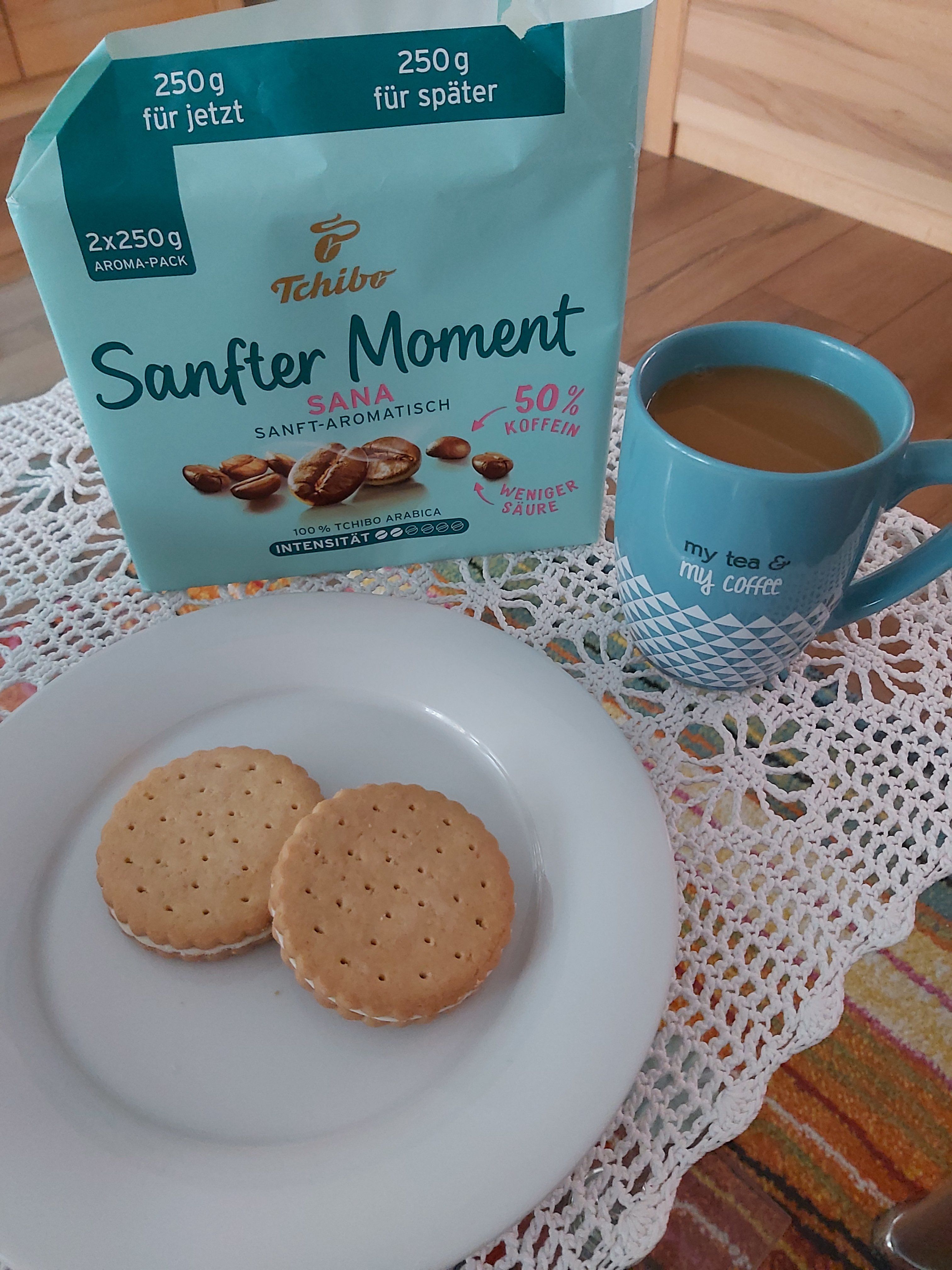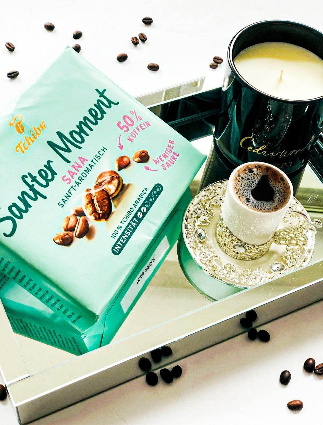 Der Kaffee "Sanfter Moment" von Tchibo schmeckt wie der Name es schon vermuten lässt sehr leicht und das Koffein ist auch nicht zu stark.