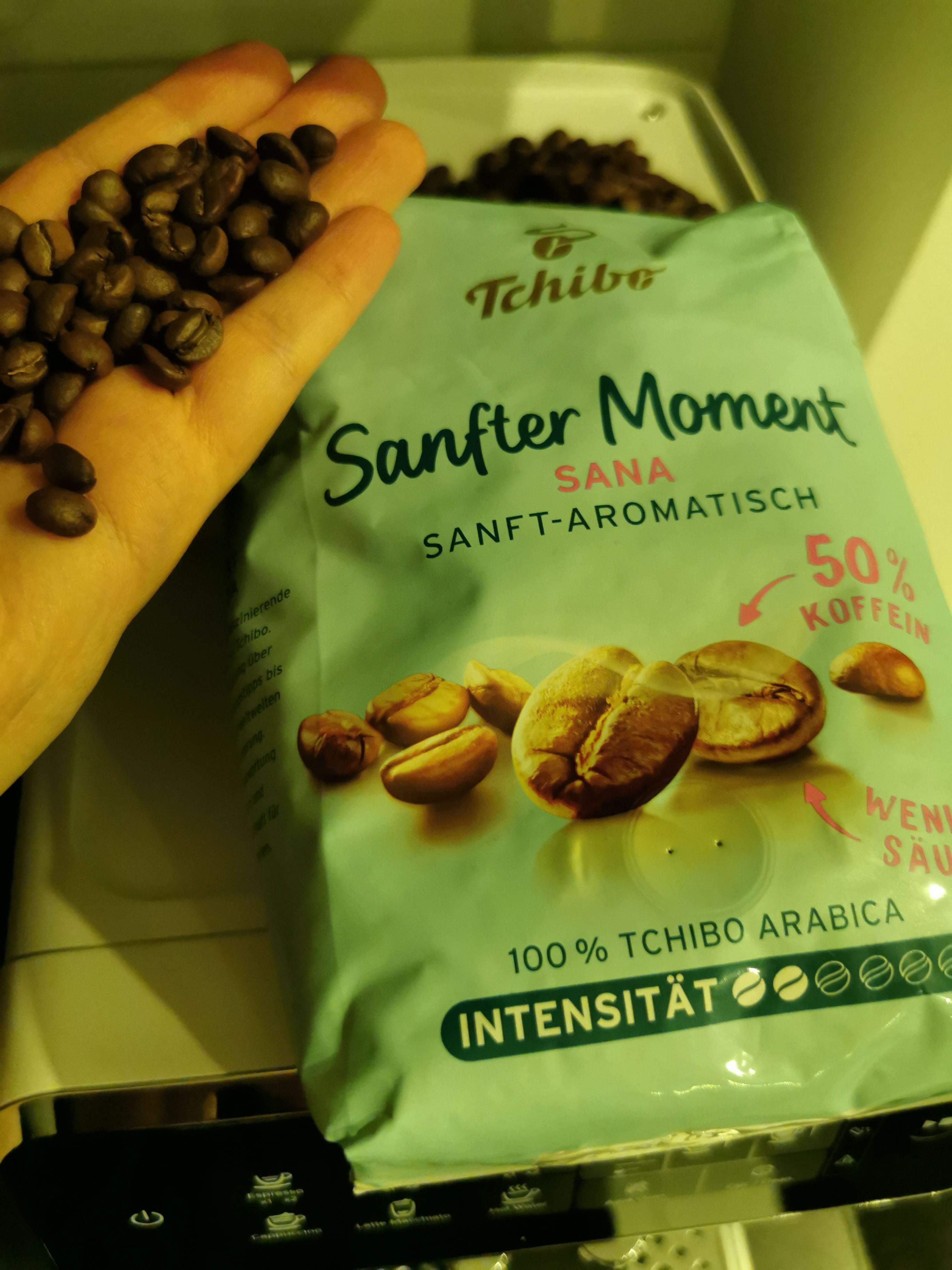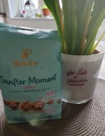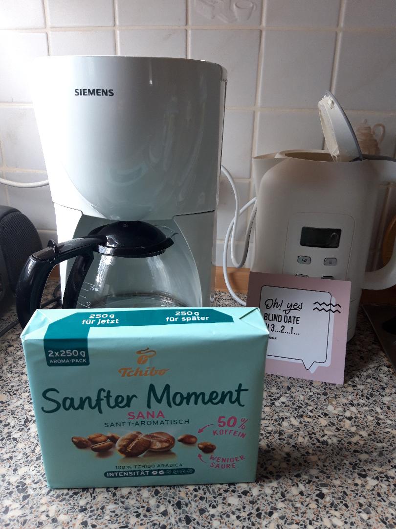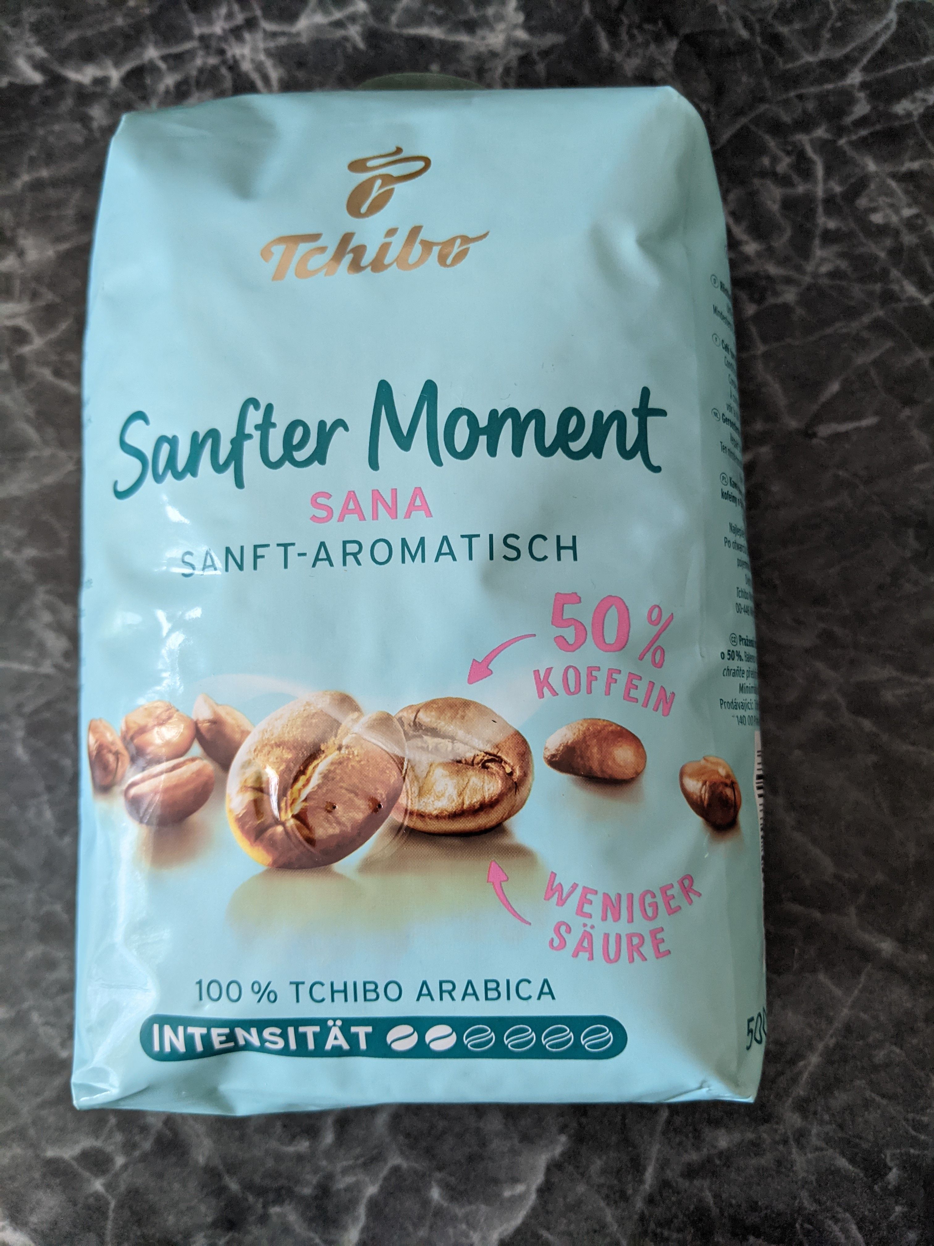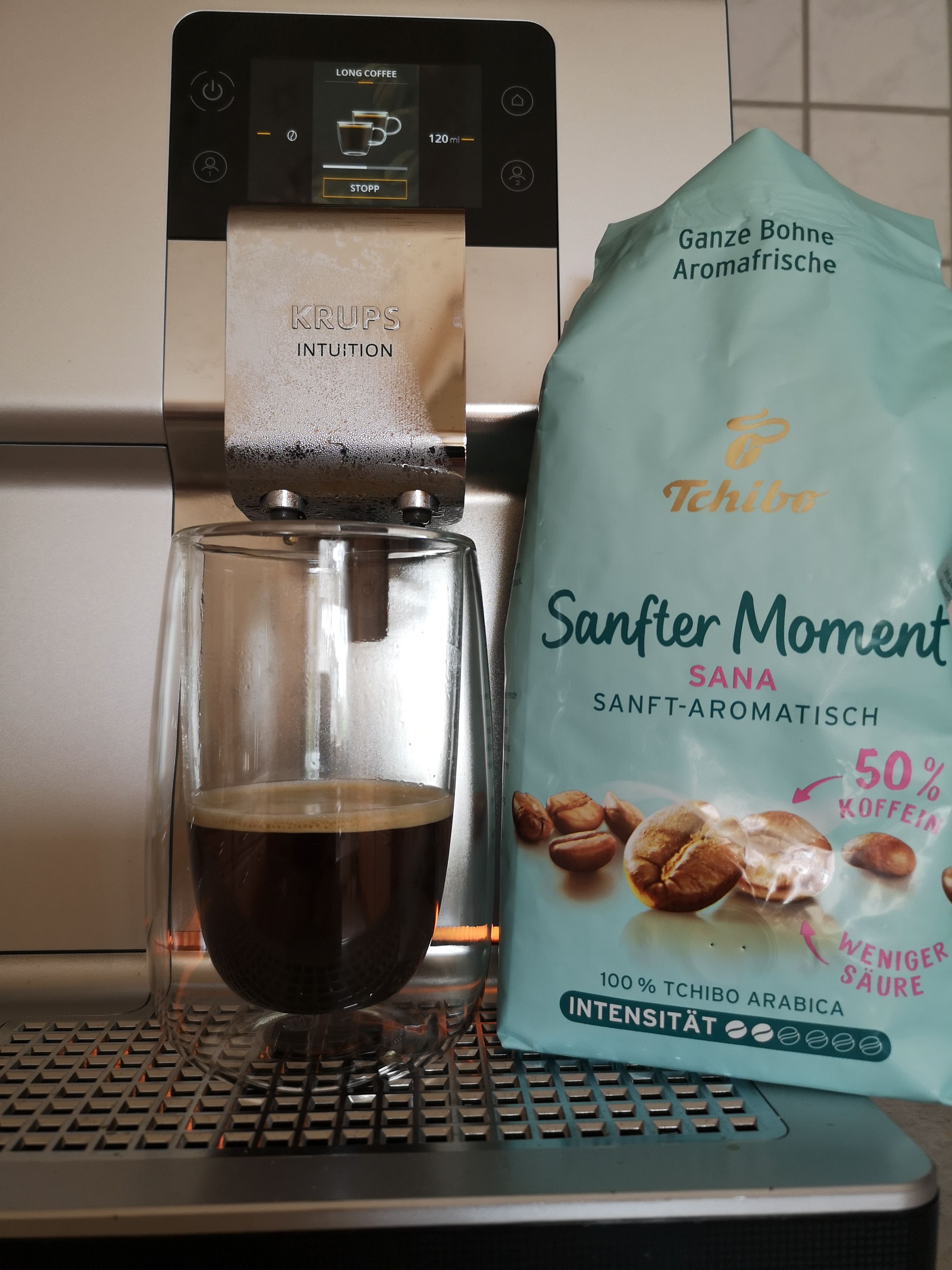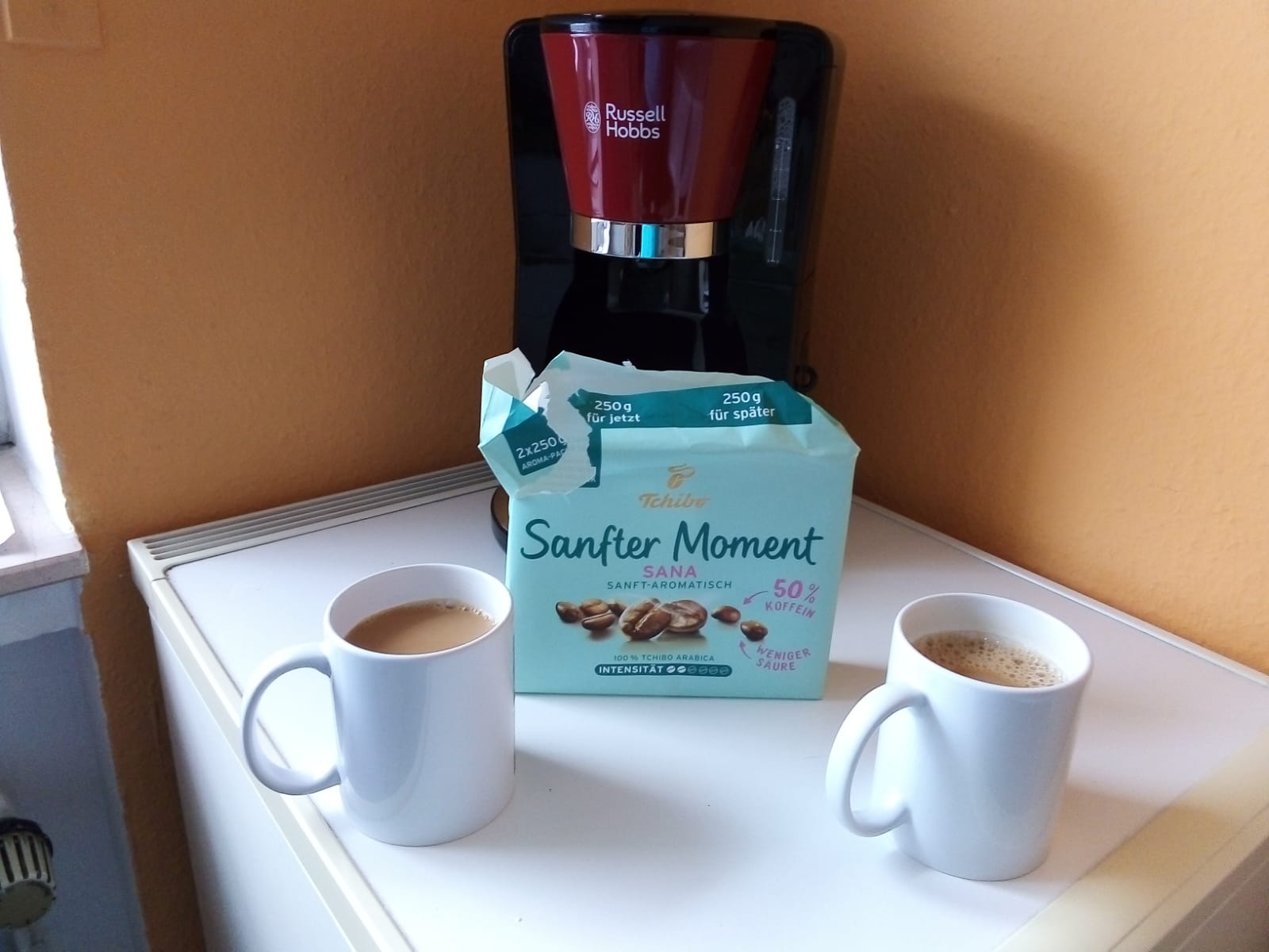 Der Kaffee "Sanfter Moment" von Tchibo schmeckt wie der Name es schon vermuten lässt sehr leicht und das Koffein ist auch nicht zu stark.