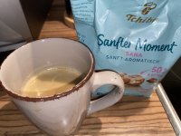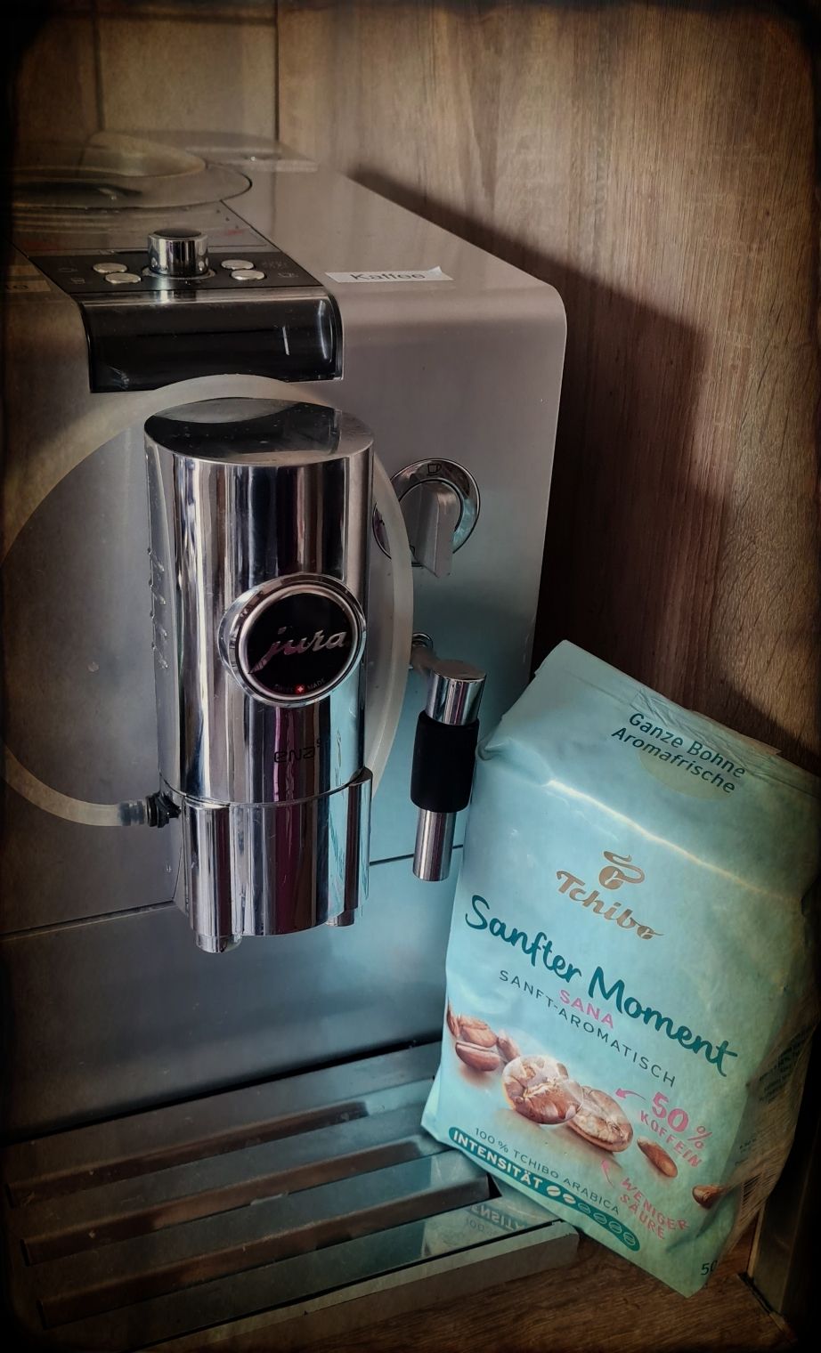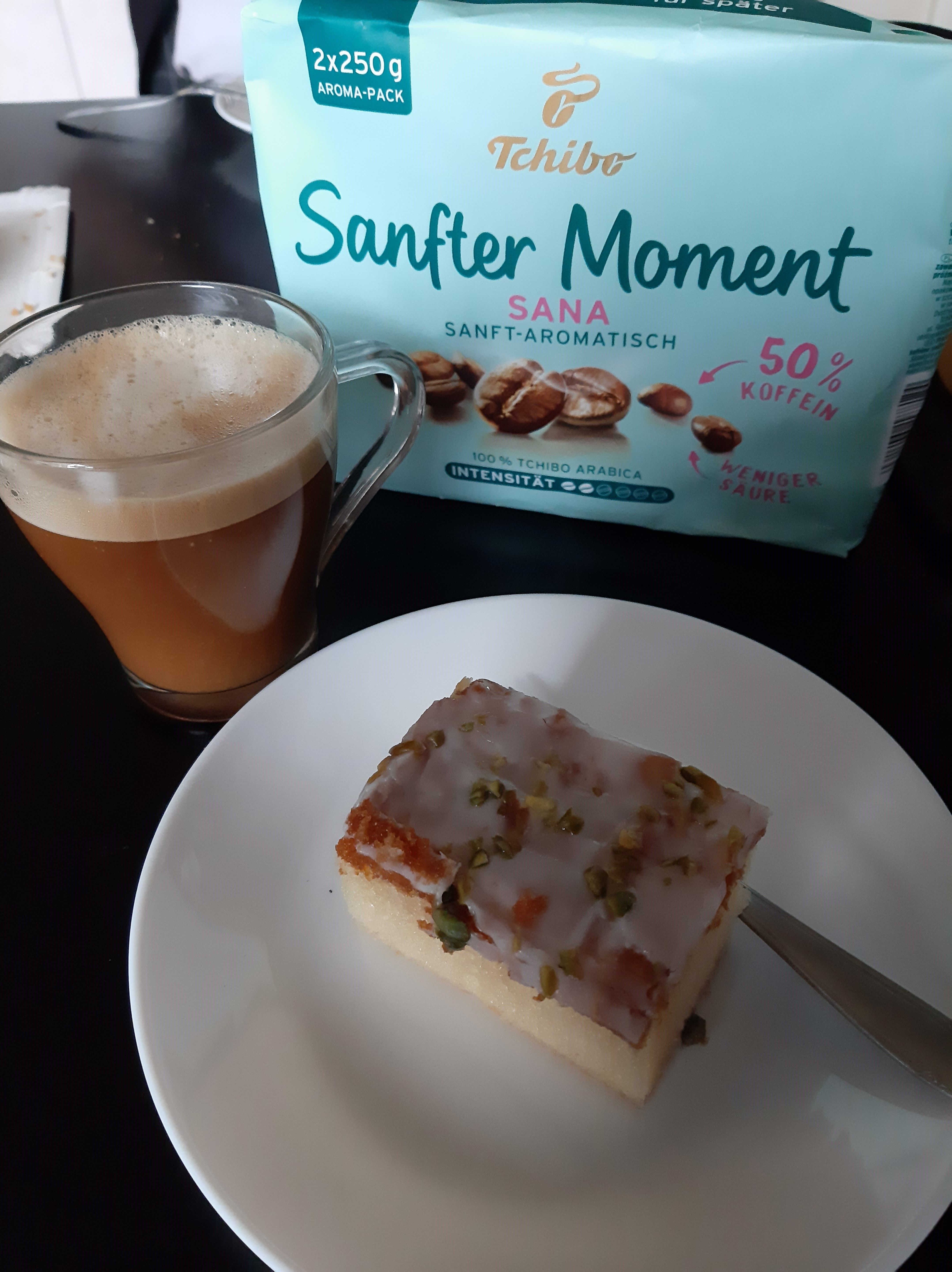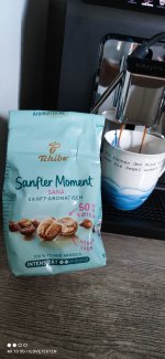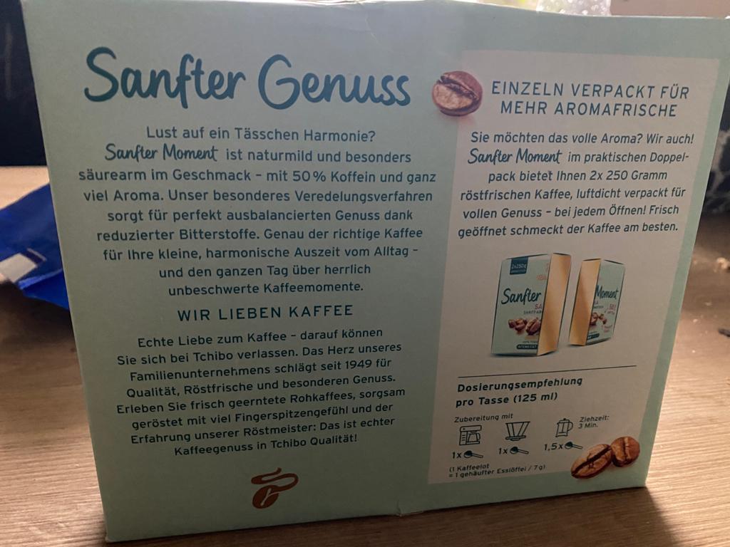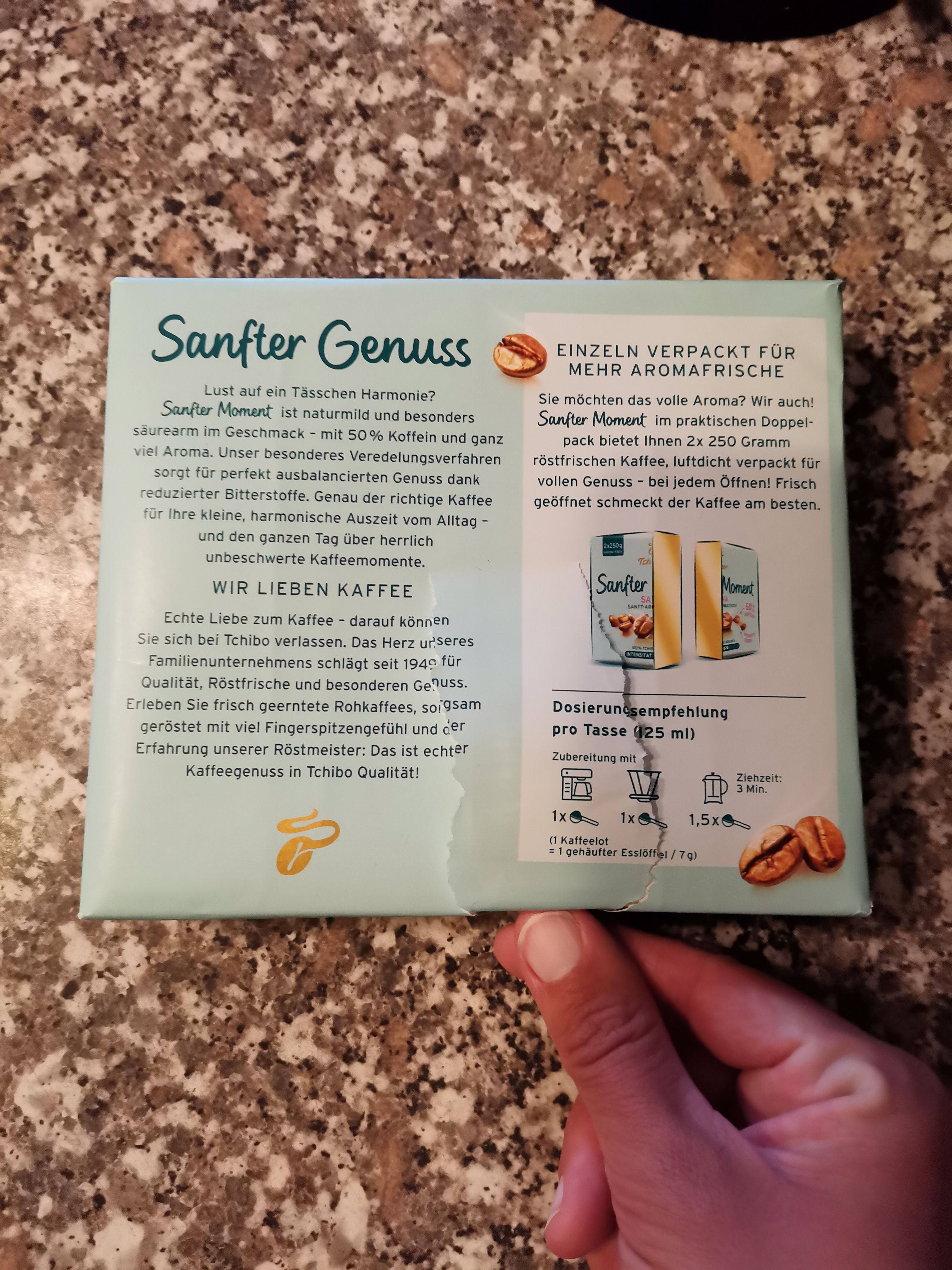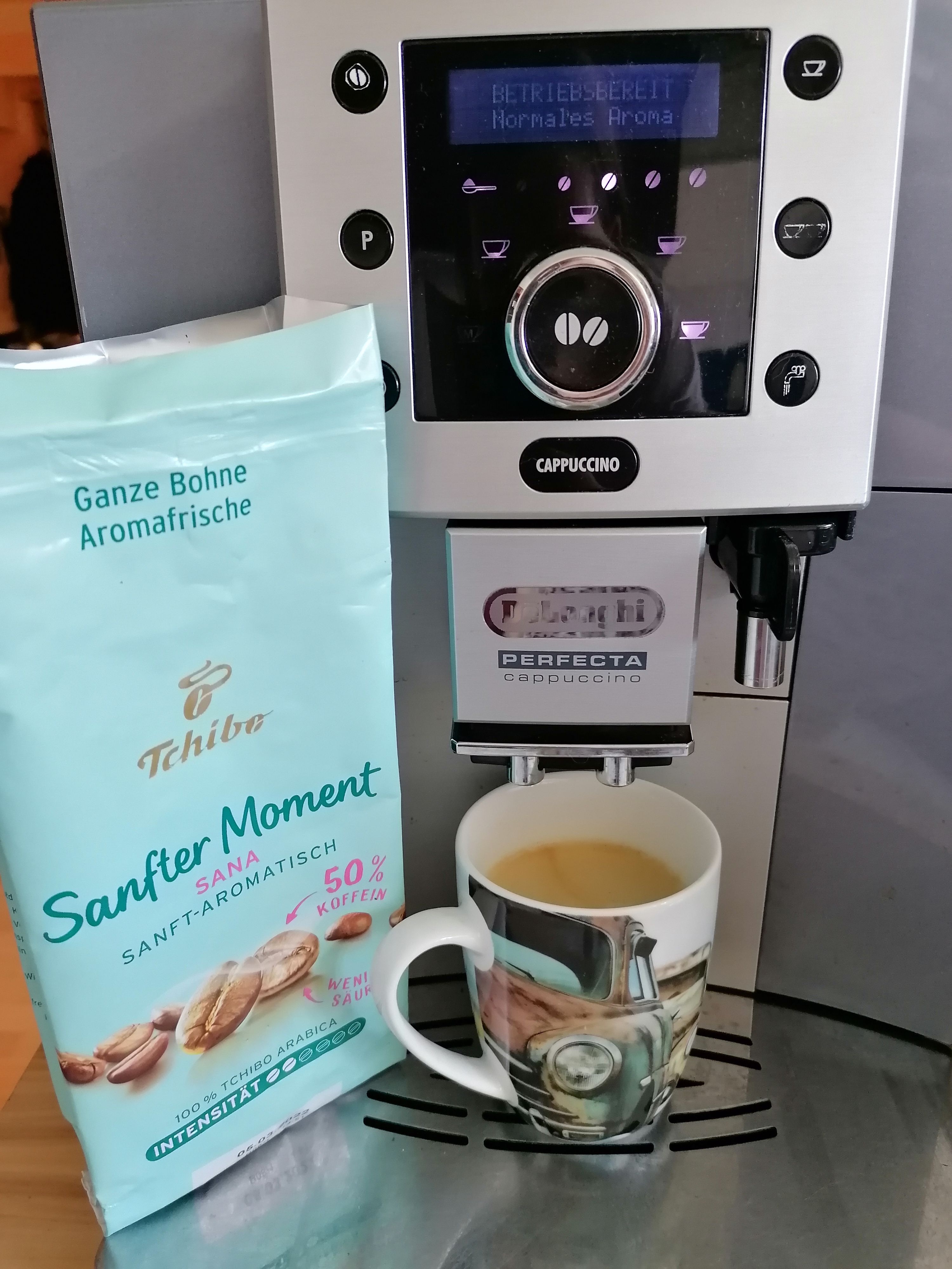 Der Kaffee "Sanfter Moment" von Tchibo schmeckt wie der Name es schon vermuten lässt sehr leicht und das Koffein ist auch nicht zu stark.