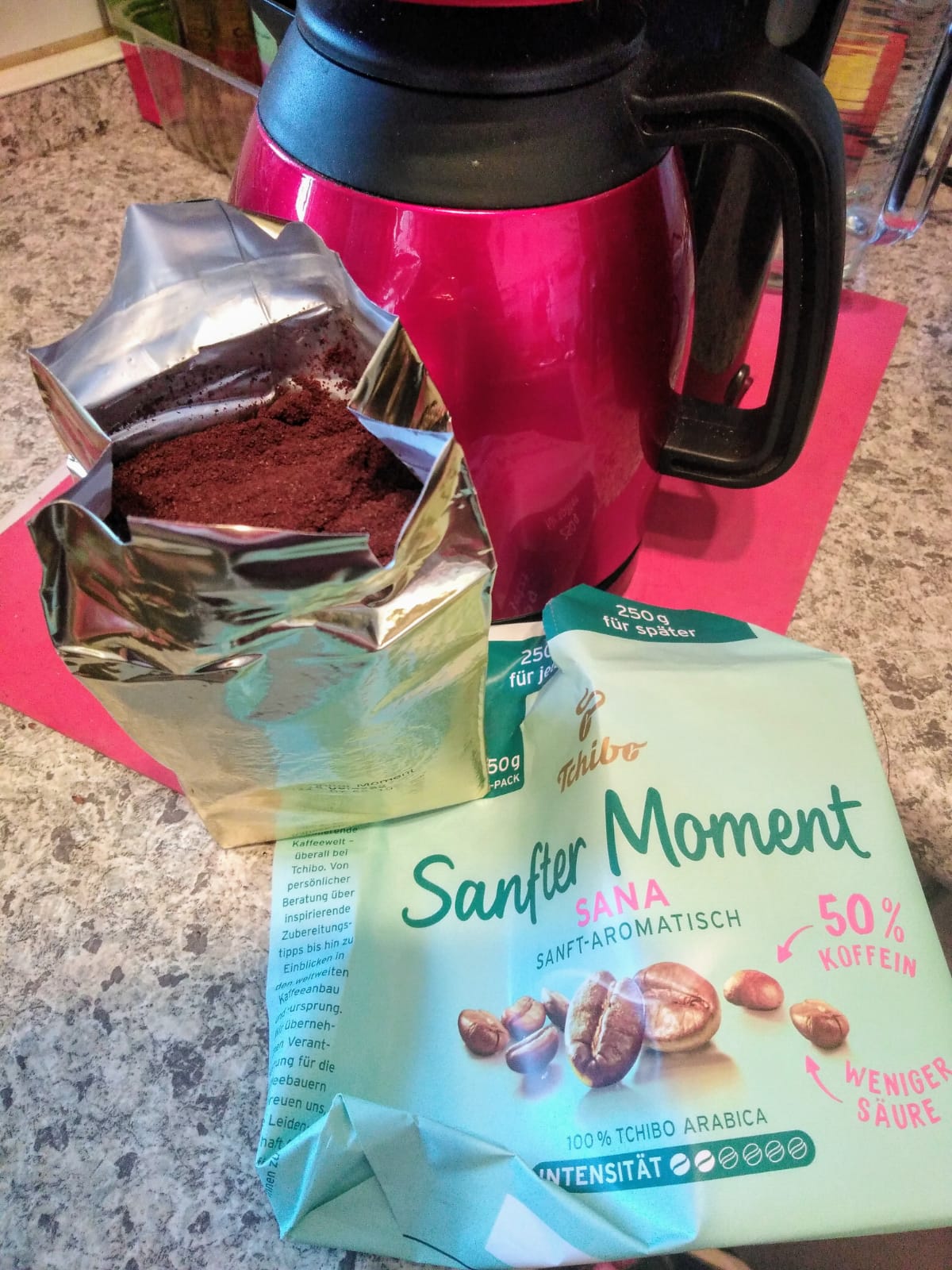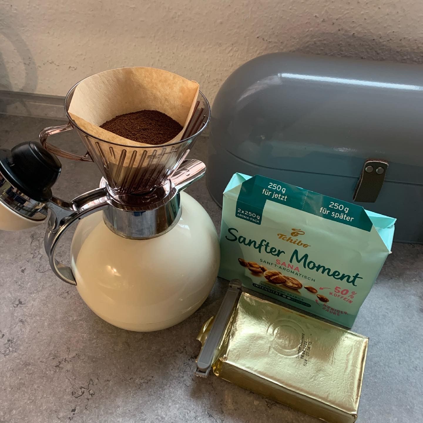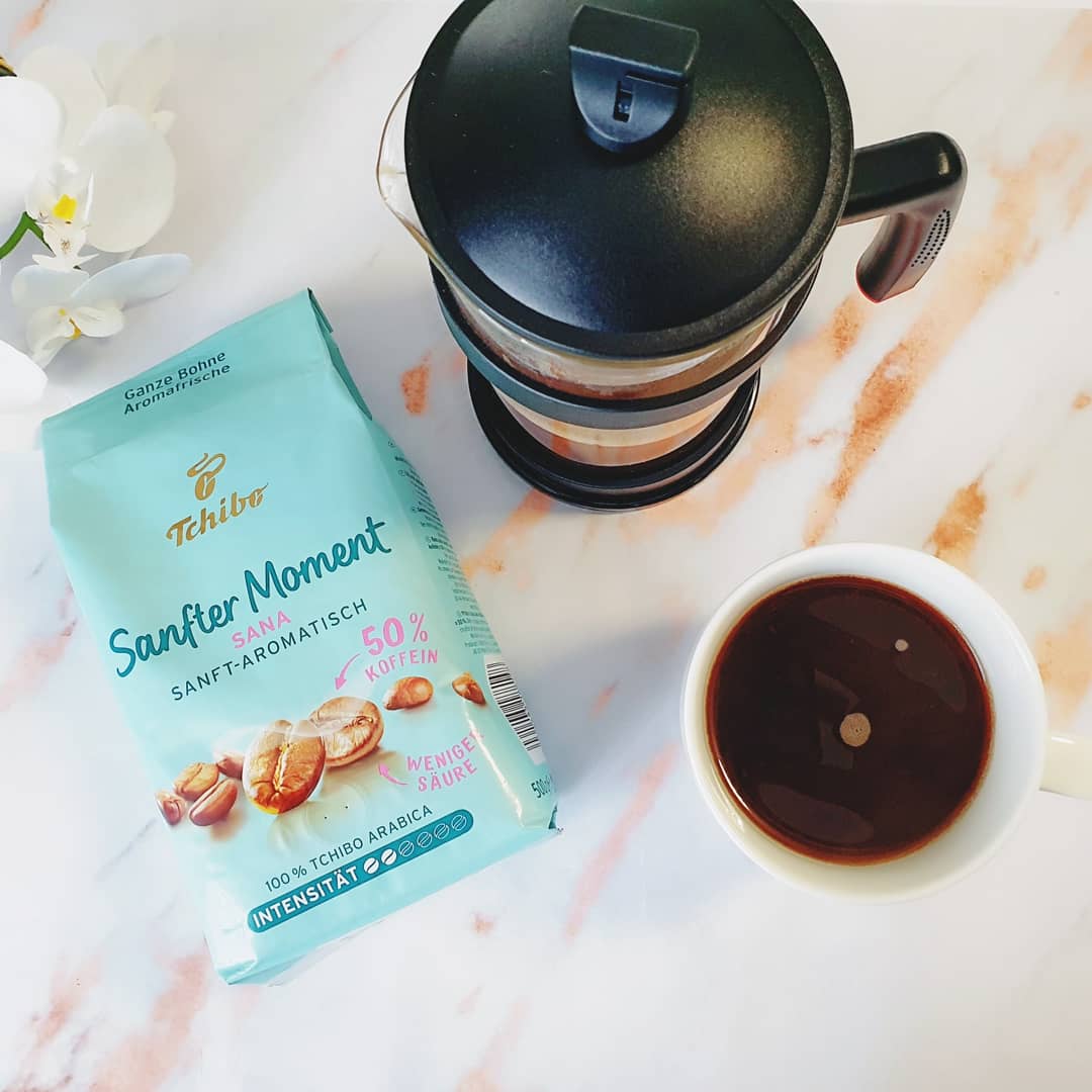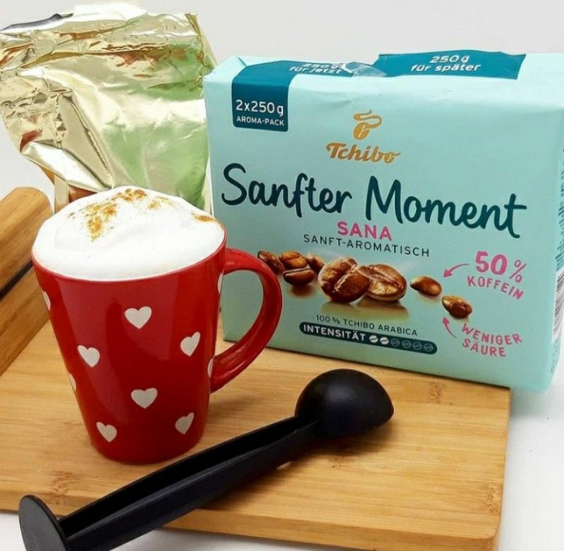 Ich habe mich sehr gefreut, dass ich den Tchibo Kaffee Sanfter Moment Sana mit weniger Koffein testen durfte, da ich unsere Tochter noch stille und sie durch den Koffein am Nachmittag immer sehr aufgeputscht ist und nicht einschlafen kann. Daher habe ich mich sehr gefreut, dass der Kaffee trotz weniger Koffein sehr gut und mild schmeckt. Ich war schon immer ein Fan von Tchibo und bin es auch nach diesem Produkttest weiterhin! Daumen hoch!