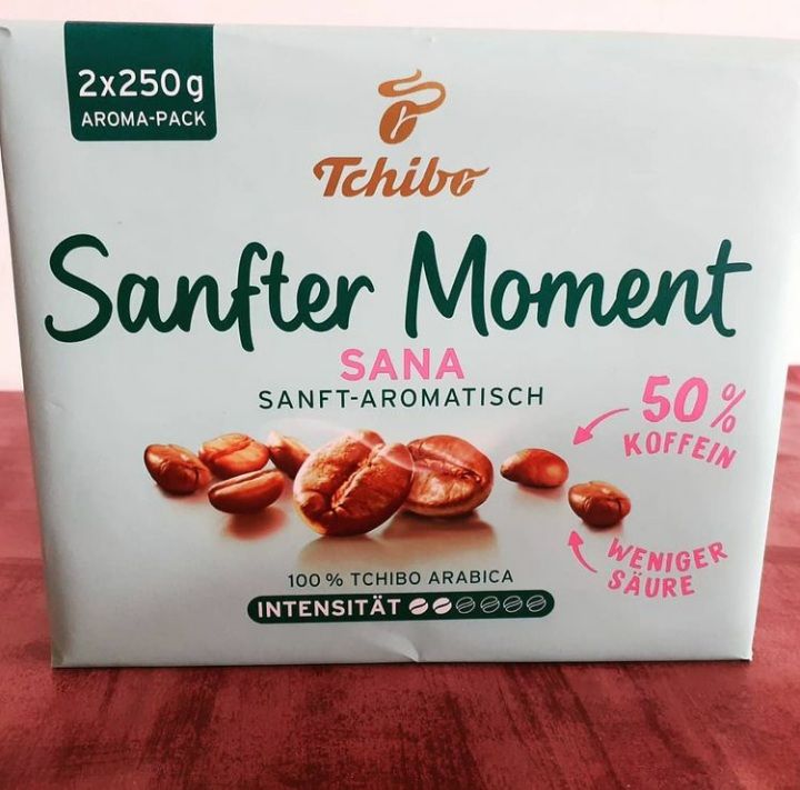 Der Tchibo Kaffee sanfter Moment mit 50 % Koffein gehalt war sehr gut verträglich für meinen eher Empfindlichen Magen. Es schmeckte dennoch nach Kaffee und ich fühlte mich auch am Morgen fitter obwohl er nur halb so viel Koffein beinhaltet wie normaler Kaffee. Das Aroma war sehr angenehm mild und ganz nach meinem Geschmack.