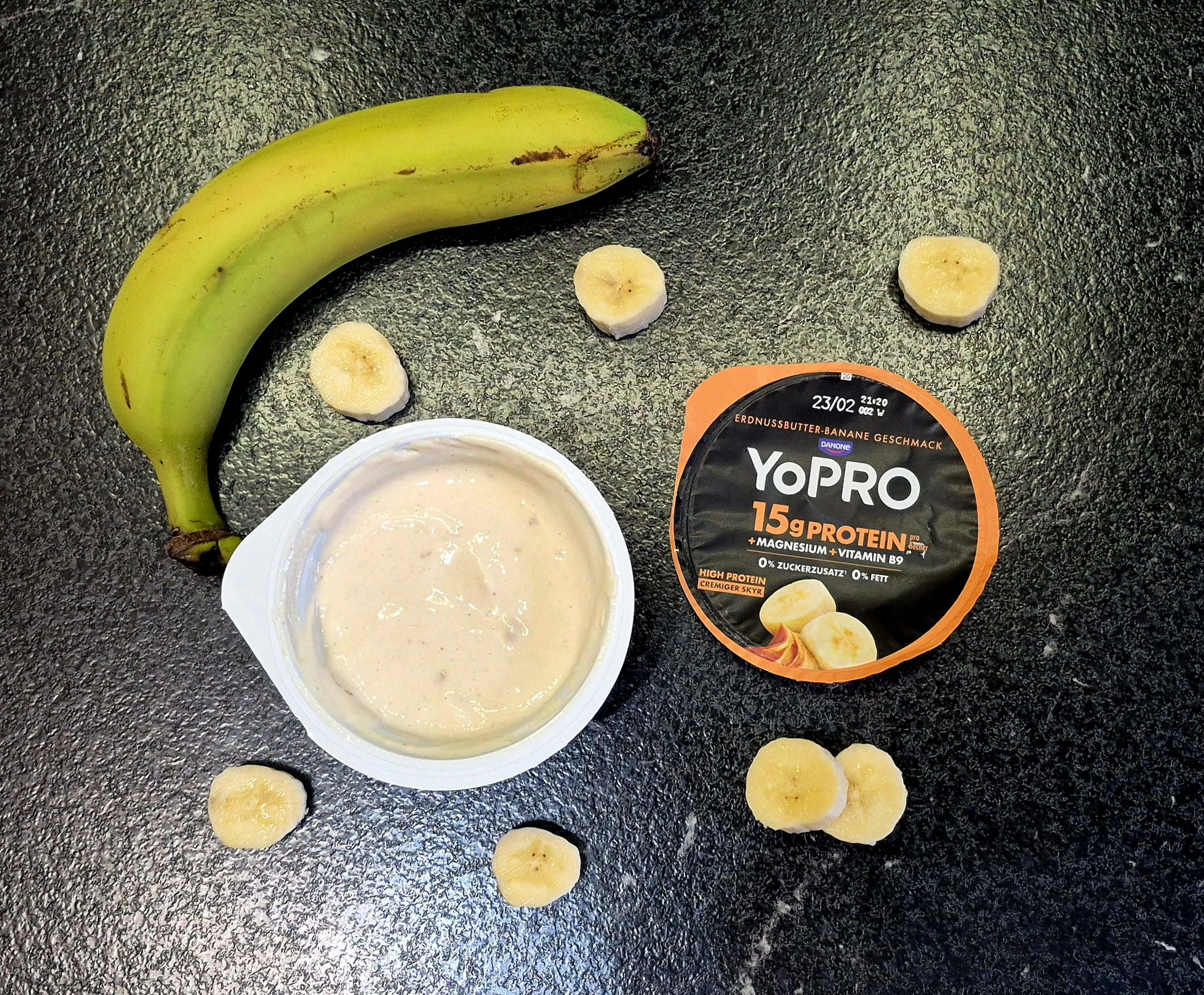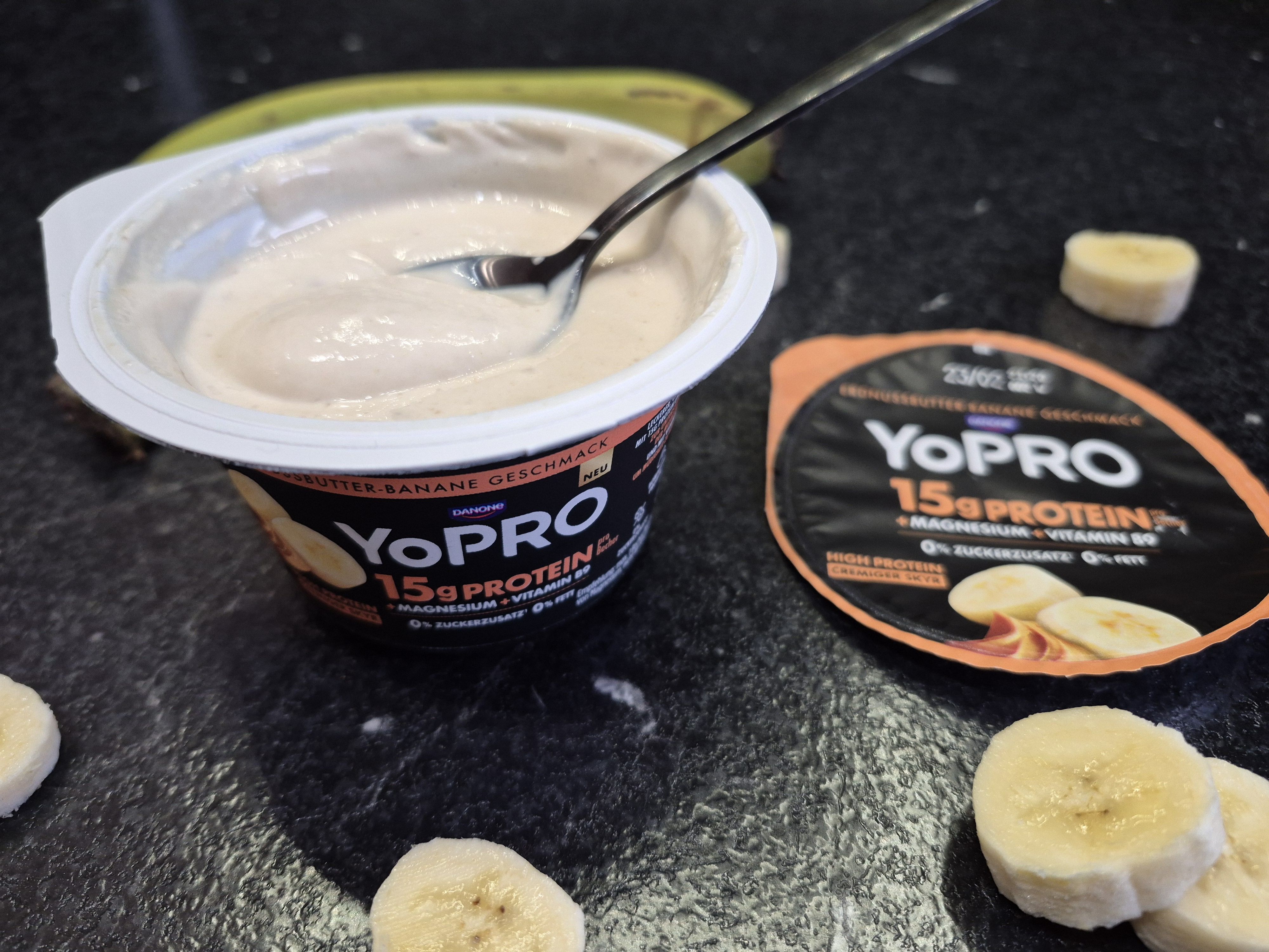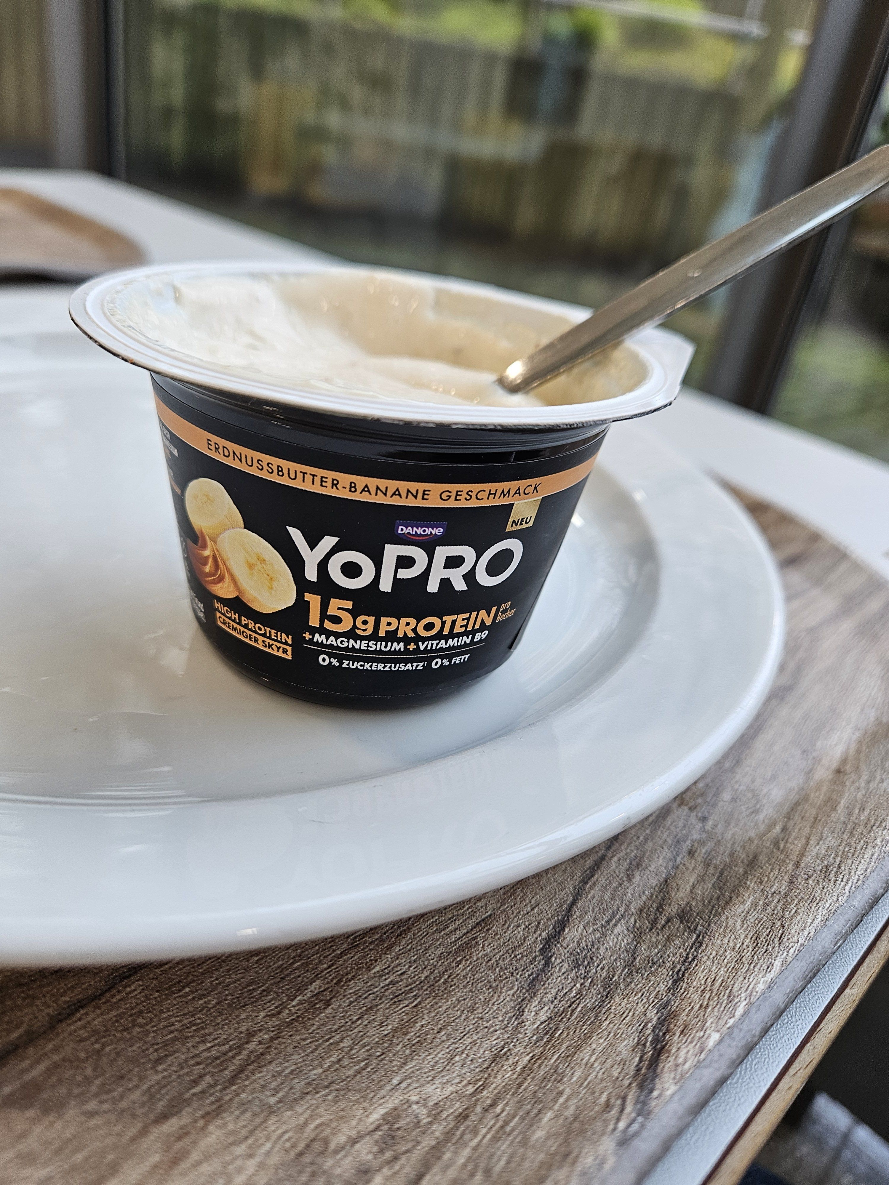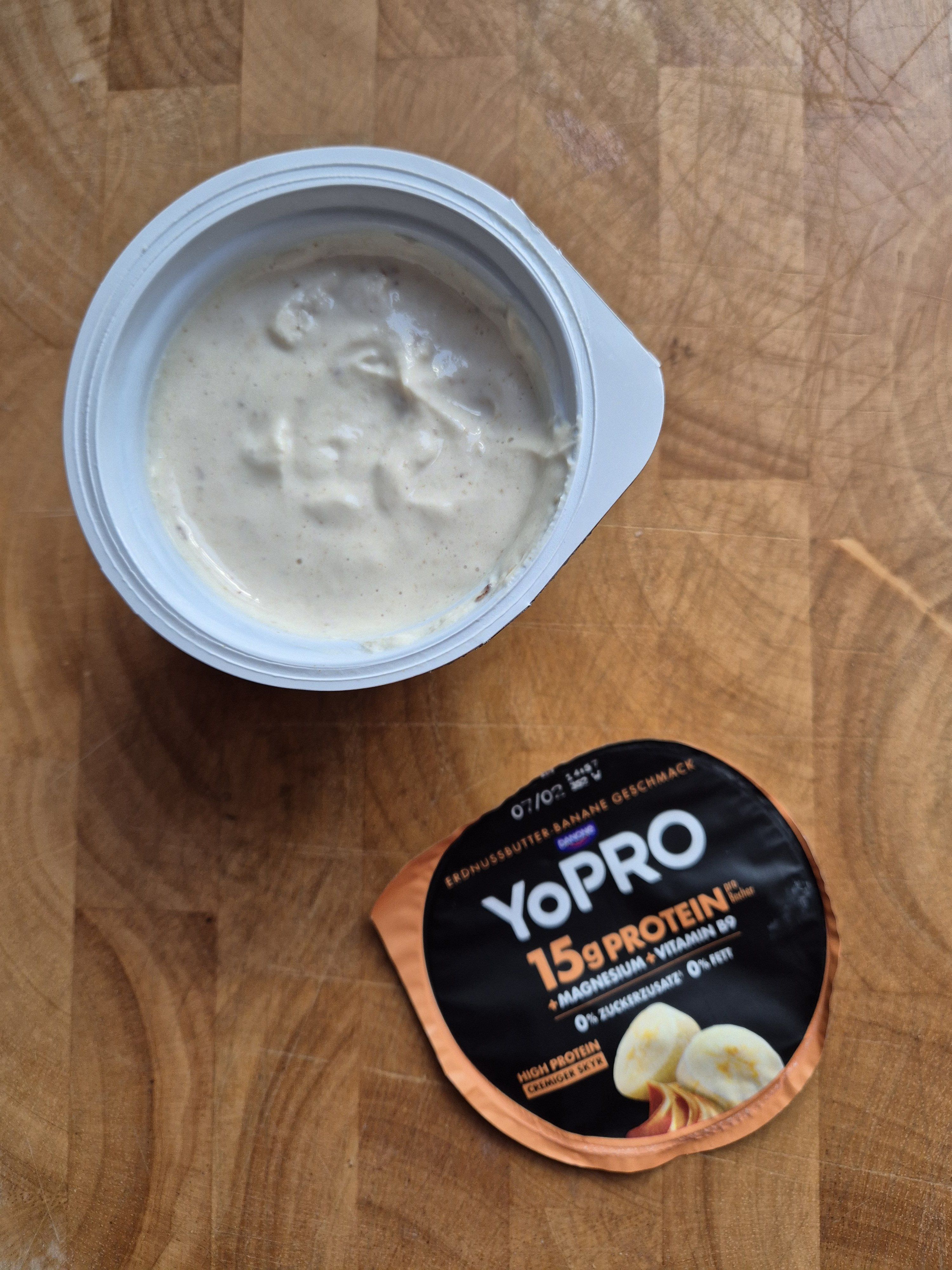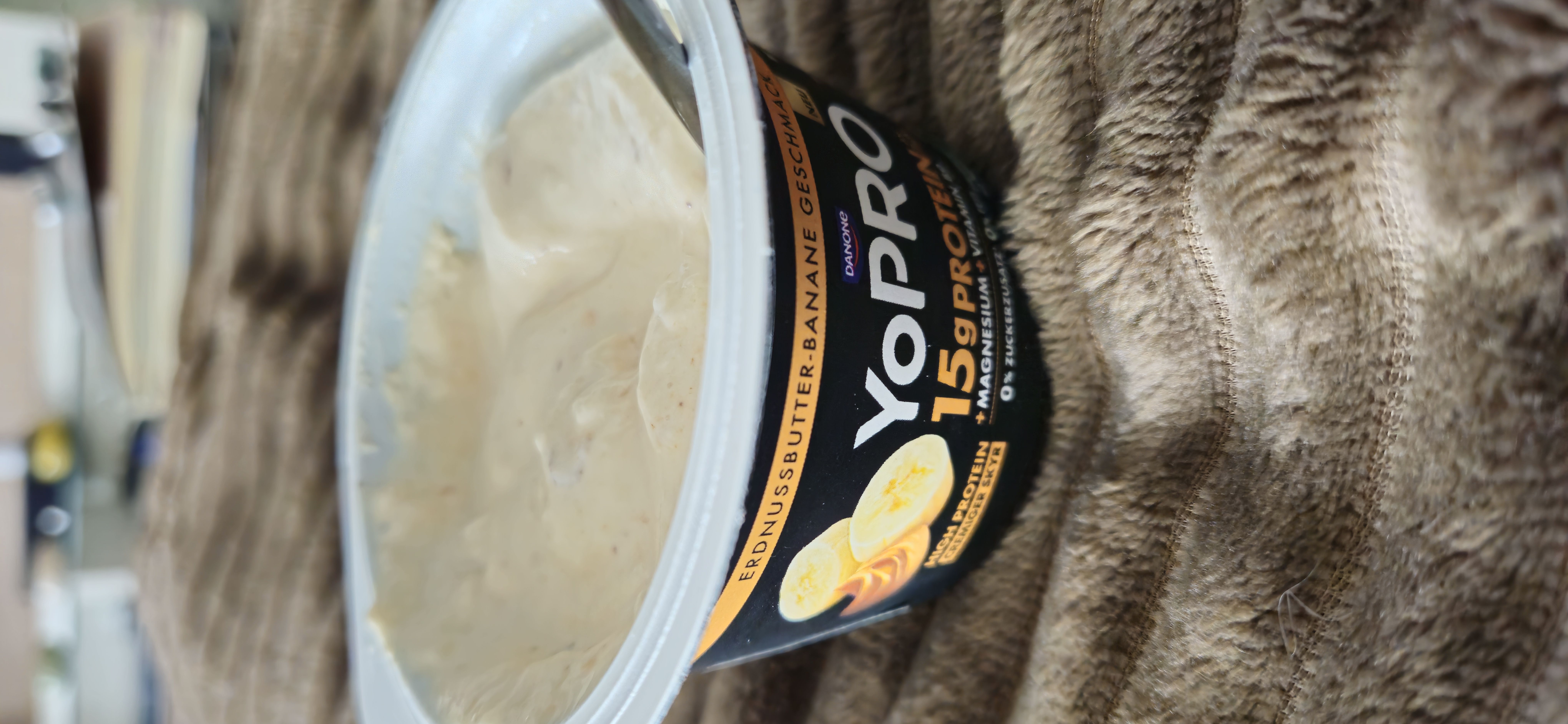 Ich habe den YoPRO Erdnussbutter Banane Skyr im Rahmen eines Produkttests ausprobiert. Die Konsistenz ist unglaublich cremig und angenehm weich – genau so, wie ich es mir bei einem Protein-Snack wünsche. Geschmacklich hat mich das Produkt ebenfalls überzeugt: weder künstlich noch übertrieben süß, sondern perfekt ausbalanciert. Die Erdnussbutter-Note kommt wunderbar zur Geltung und die Banane rundet das Ganze harmonisch ab. Dazu noch ein hoher Proteingehalt, einfach top. Ich habe als Topping eine frischen Banane, Leinsamen, Walnusskerne und Erdnussbutter verwendet. So lecker und so sättigend!