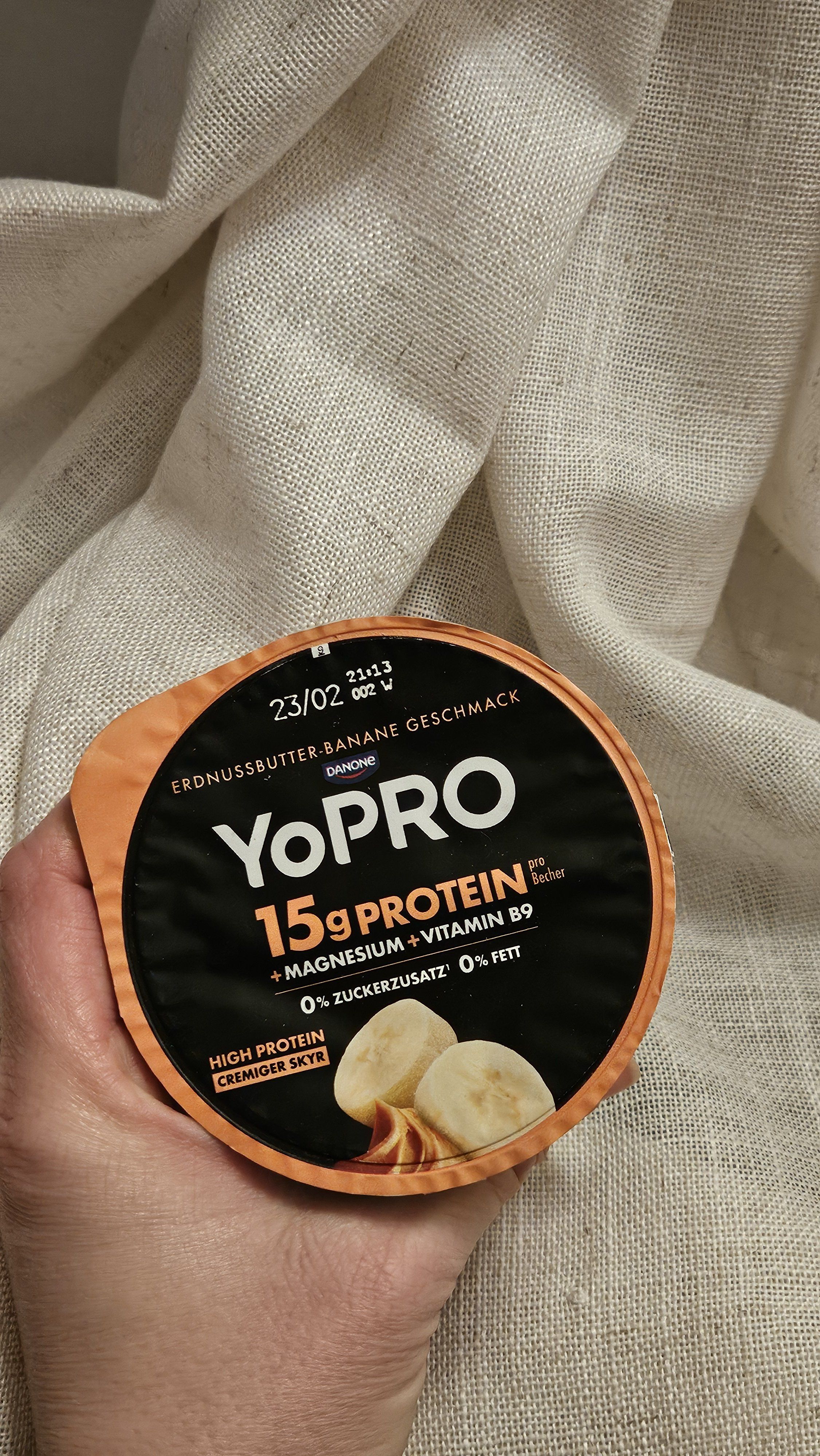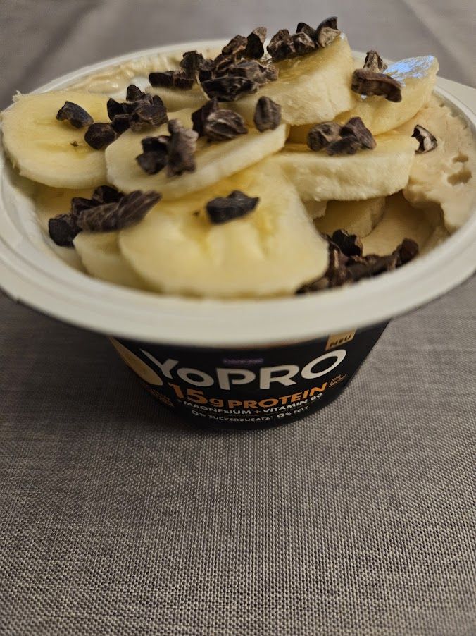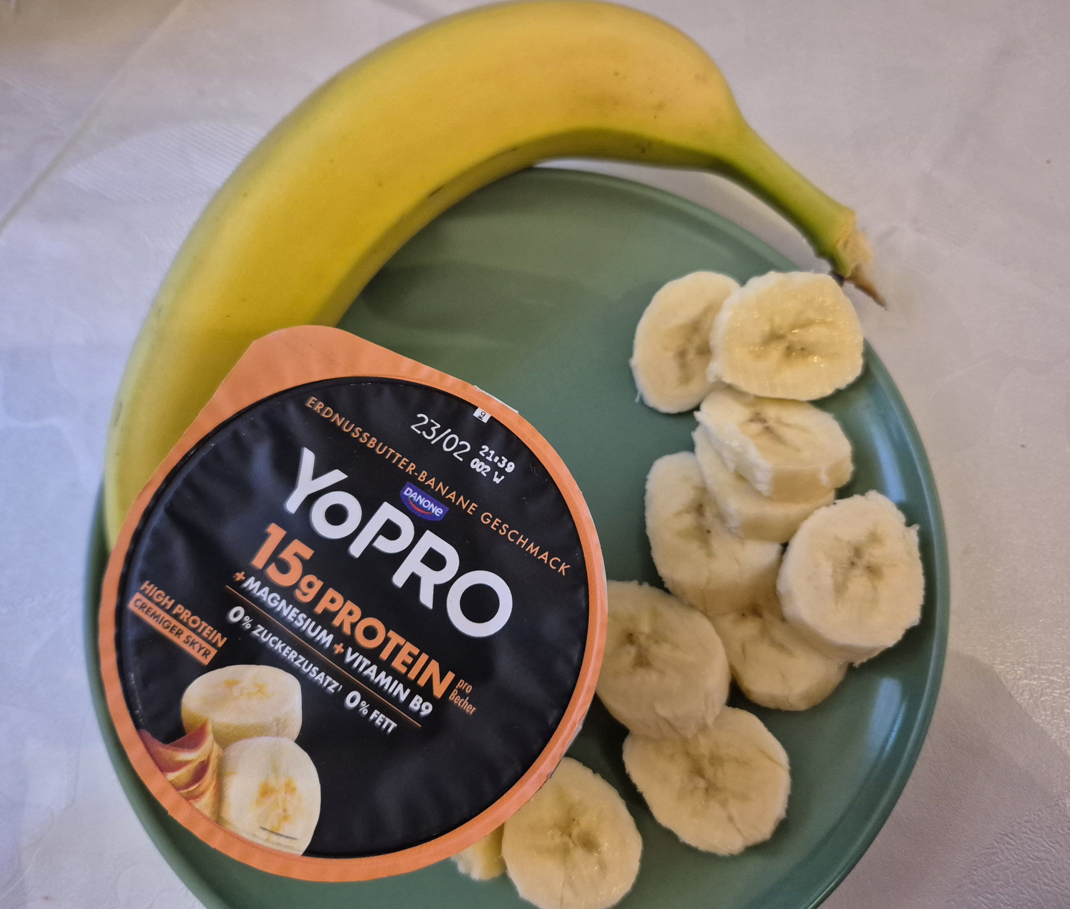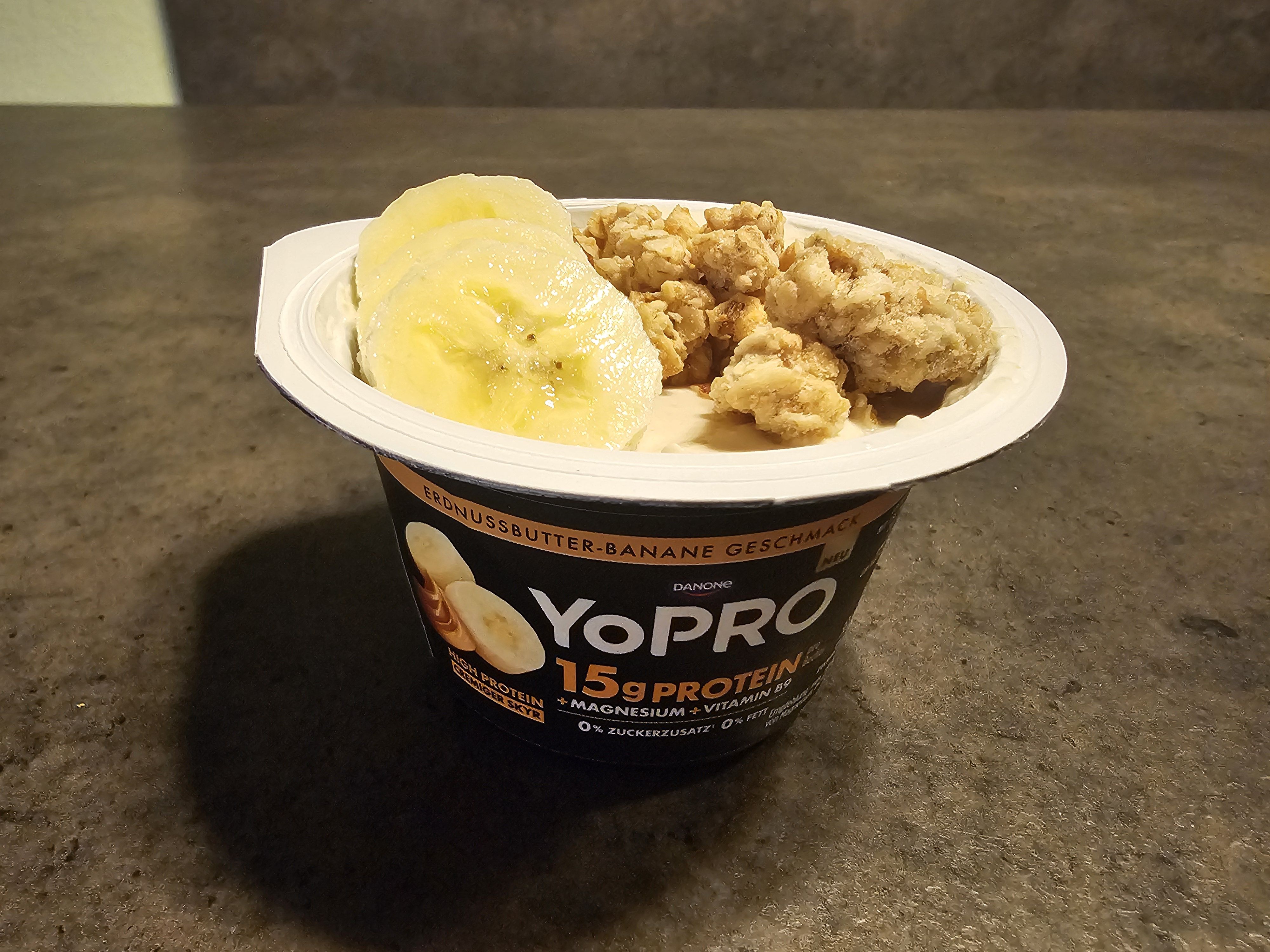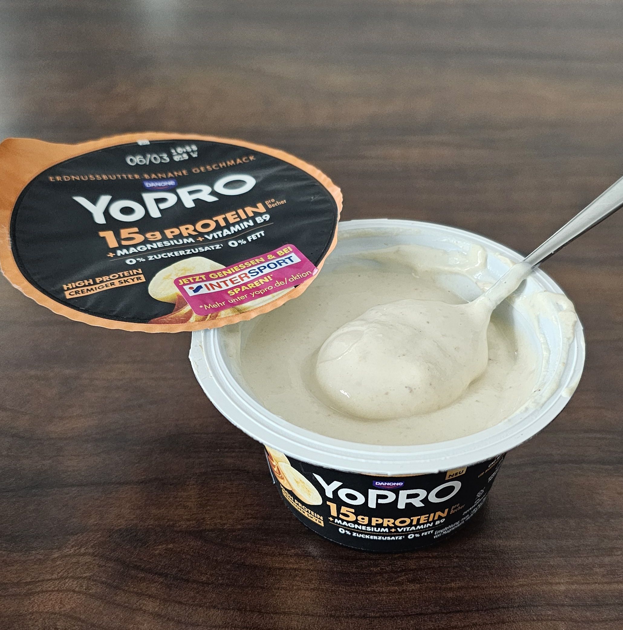 Ich habe den YoPRO Erdnussbutter Banane Skyr im Rahmen eines Produkttests ausprobiert. Die Konsistenz ist unglaublich cremig und angenehm weich – genau so, wie ich es mir bei einem Protein-Snack wünsche. Geschmacklich hat mich das Produkt ebenfalls überzeugt: weder künstlich noch übertrieben süß, sondern perfekt ausbalanciert. Die Erdnussbutter-Note kommt wunderbar zur Geltung und die Banane rundet das Ganze harmonisch ab. Dazu noch ein hoher Proteingehalt, einfach top. Ich habe als Topping eine frischen Banane, Leinsamen, Walnusskerne und Erdnussbutter verwendet. So lecker und so sättigend!