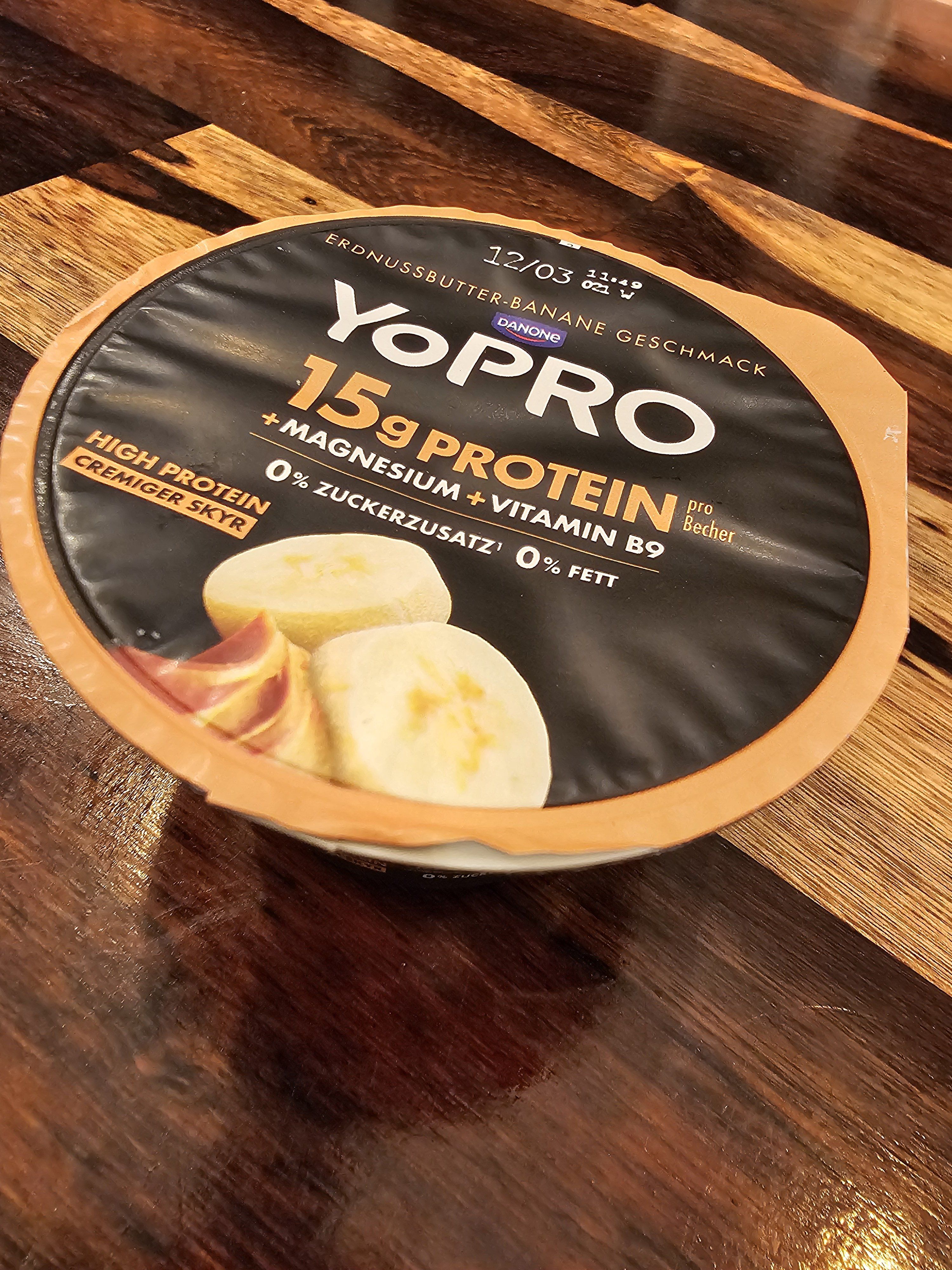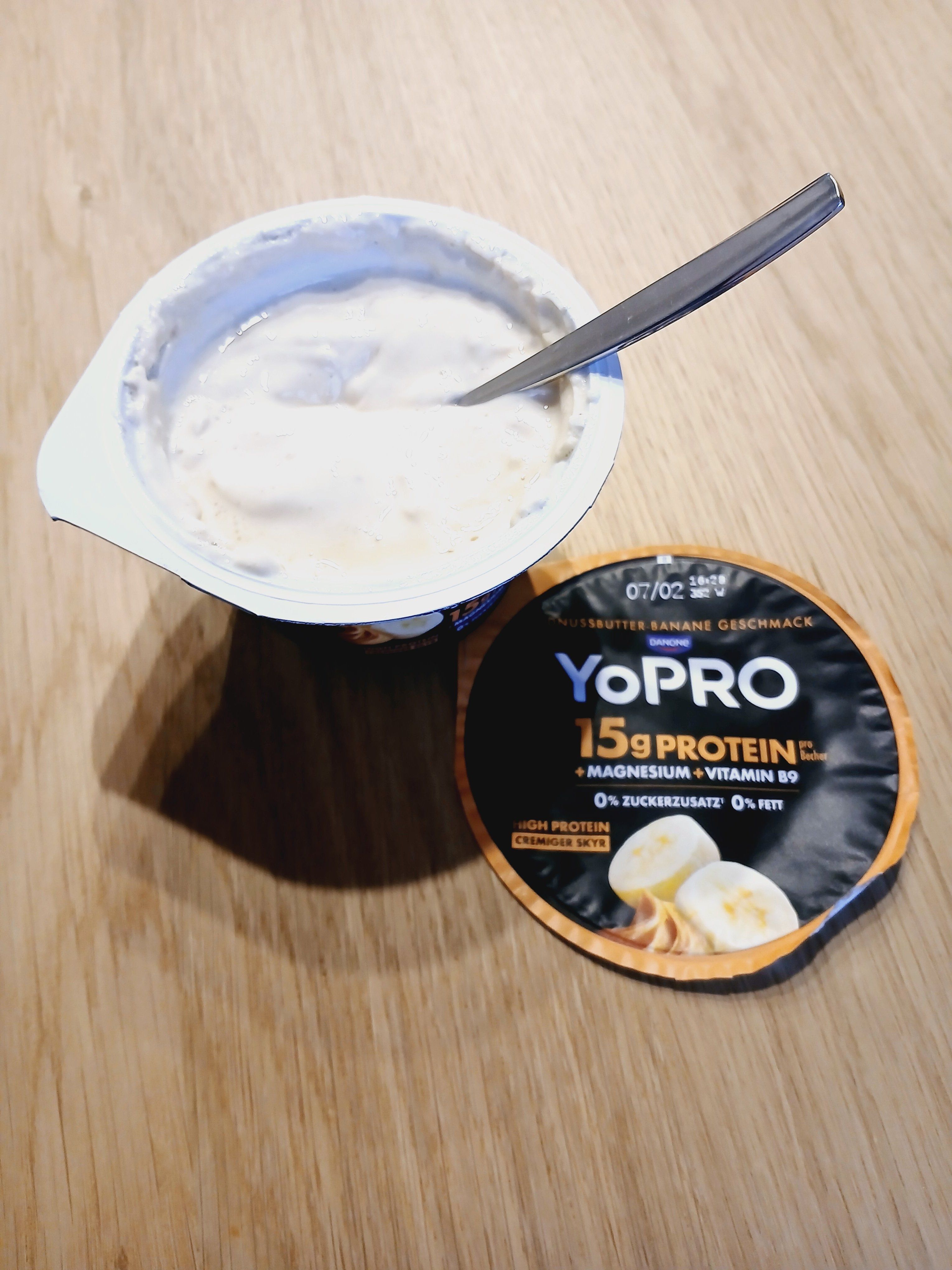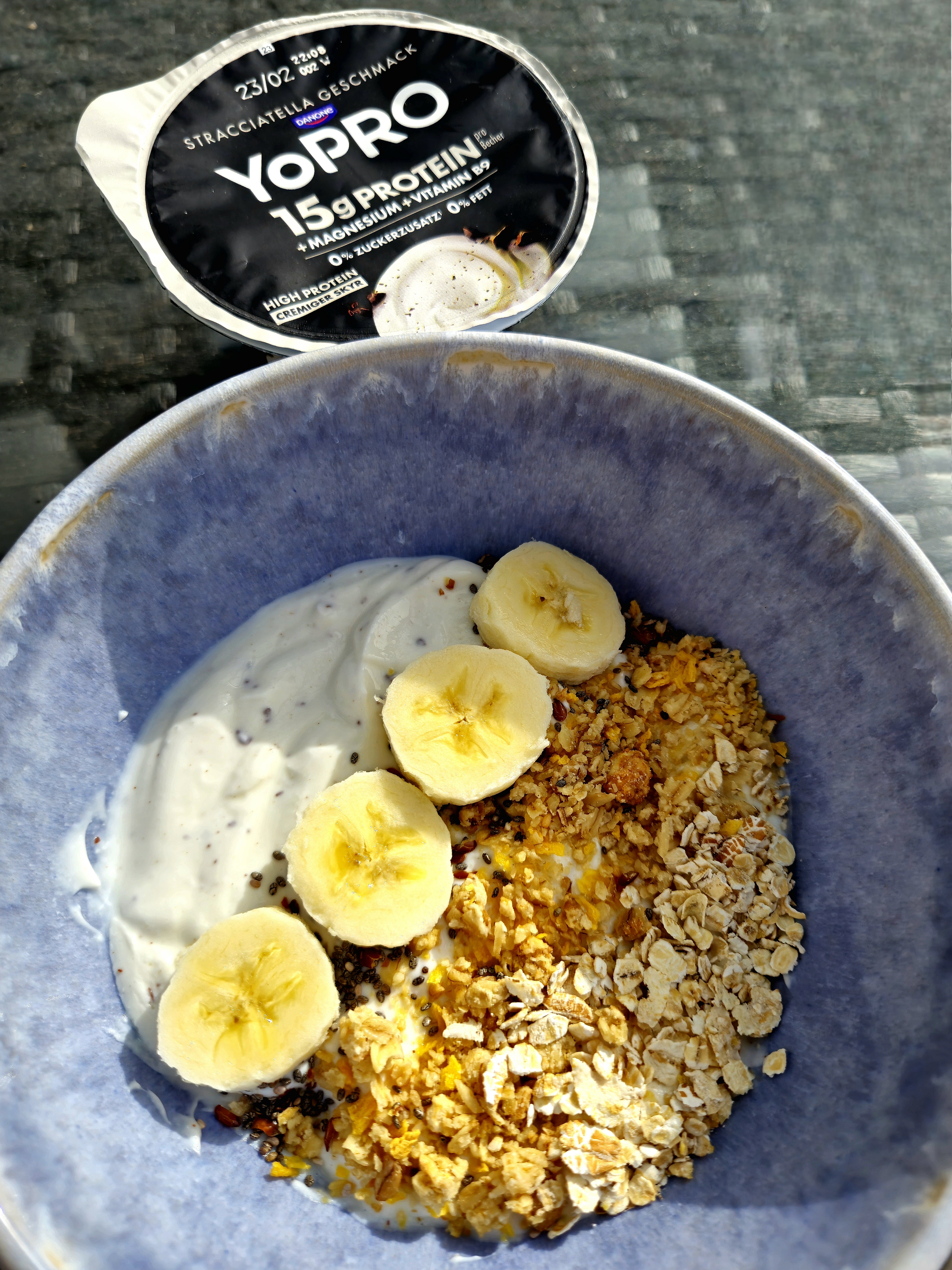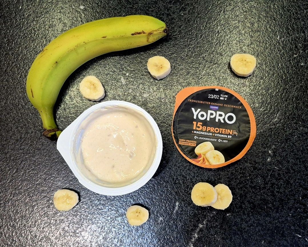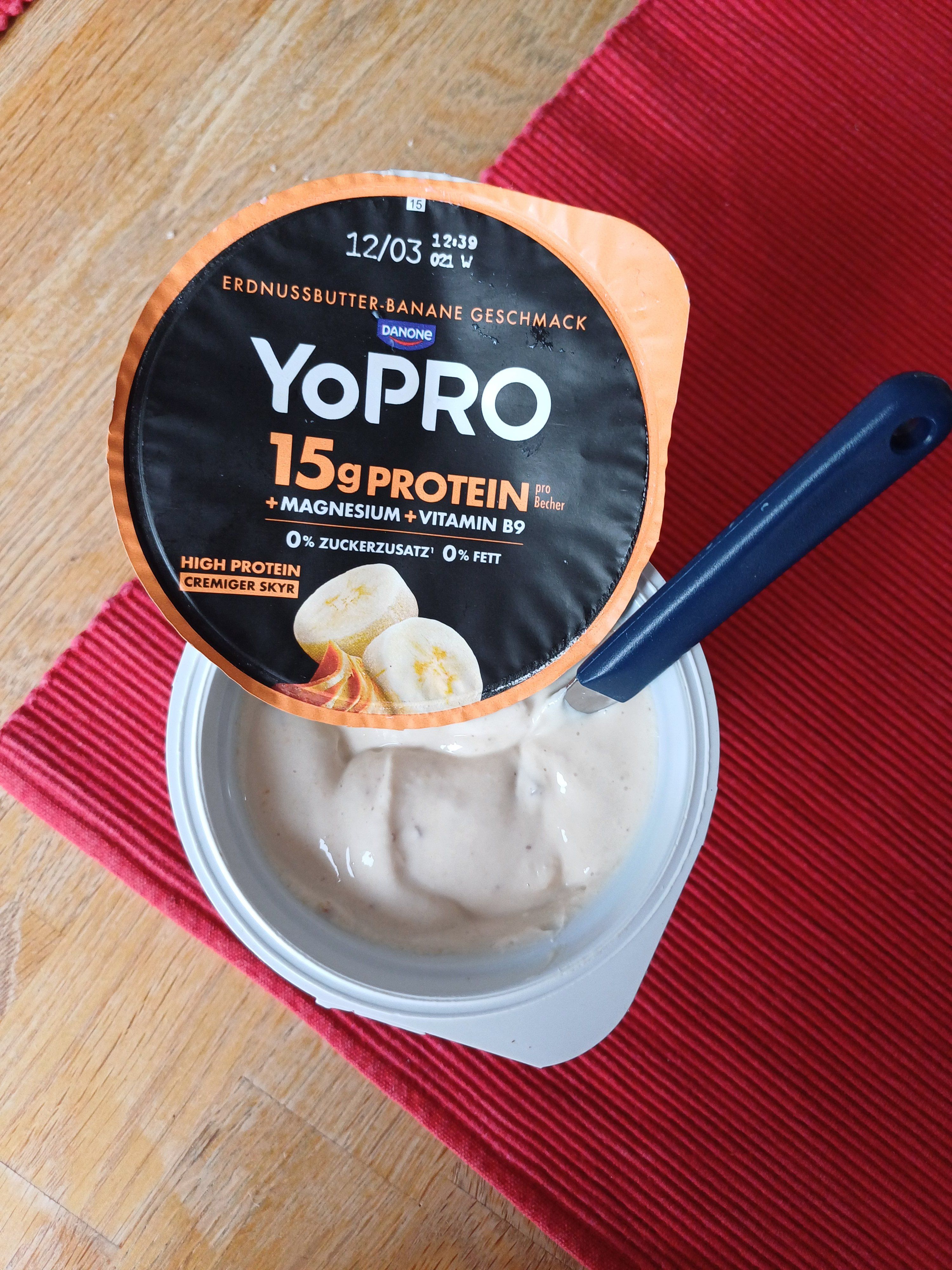 Ich habe den YoPRO Erdnussbutter Banane Skyr im Rahmen eines Produkttests ausprobiert. Die Konsistenz ist unglaublich cremig und angenehm weich – genau so, wie ich es mir bei einem Protein-Snack wünsche. Geschmacklich hat mich das Produkt ebenfalls überzeugt: weder künstlich noch übertrieben süß, sondern perfekt ausbalanciert. Die Erdnussbutter-Note kommt wunderbar zur Geltung und die Banane rundet das Ganze harmonisch ab. Dazu noch ein hoher Proteingehalt, einfach top. Ich habe als Topping eine frischen Banane, Leinsamen, Walnusskerne und Erdnussbutter verwendet. So lecker und so sättigend!