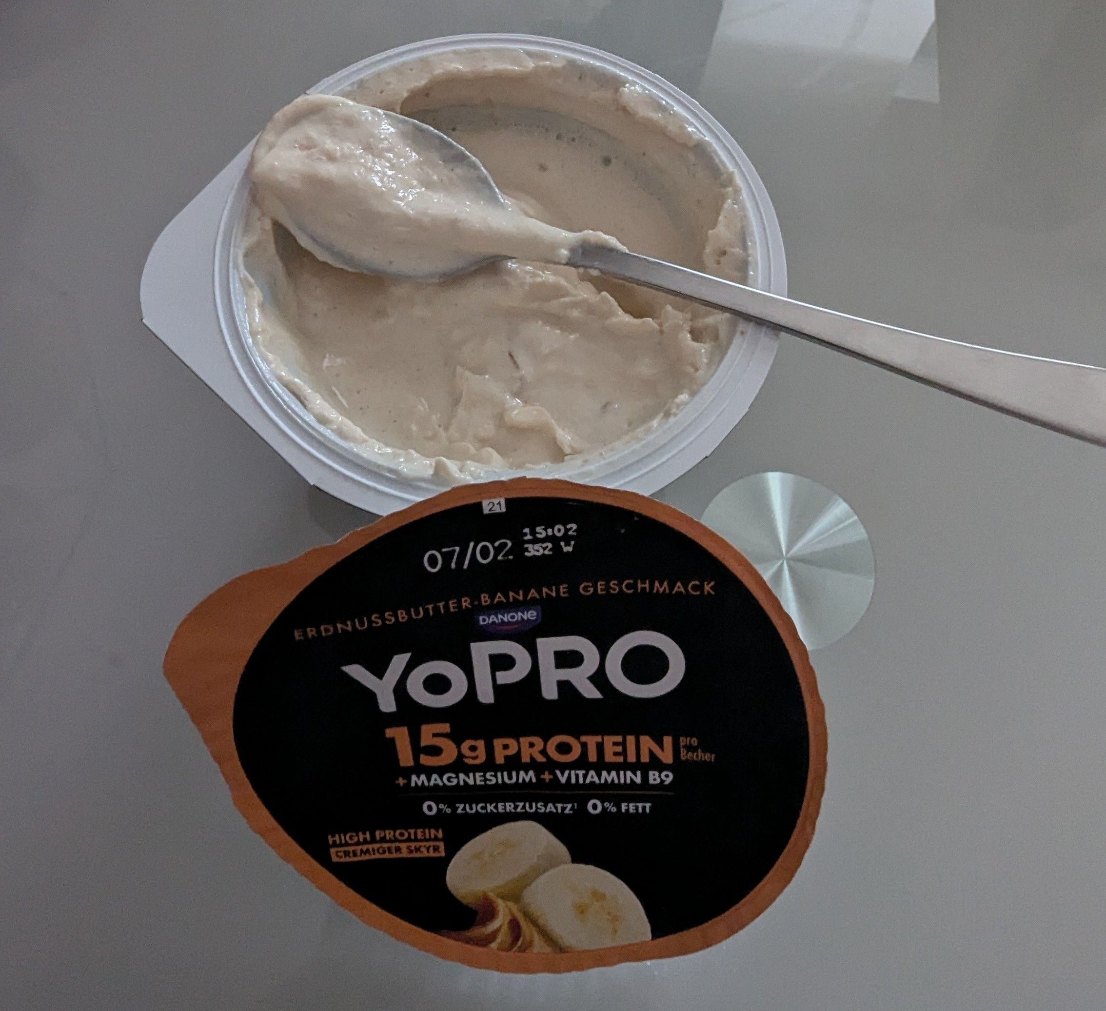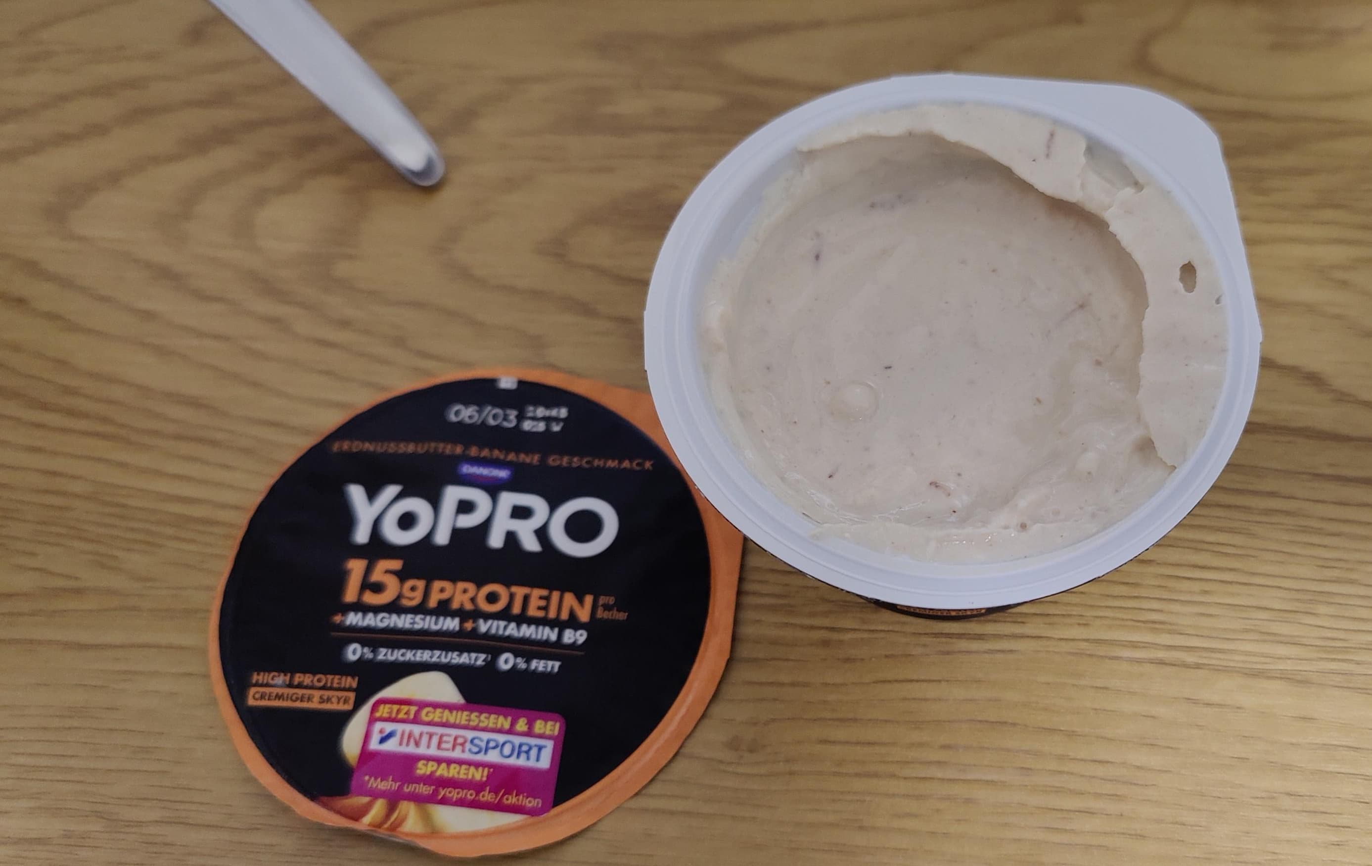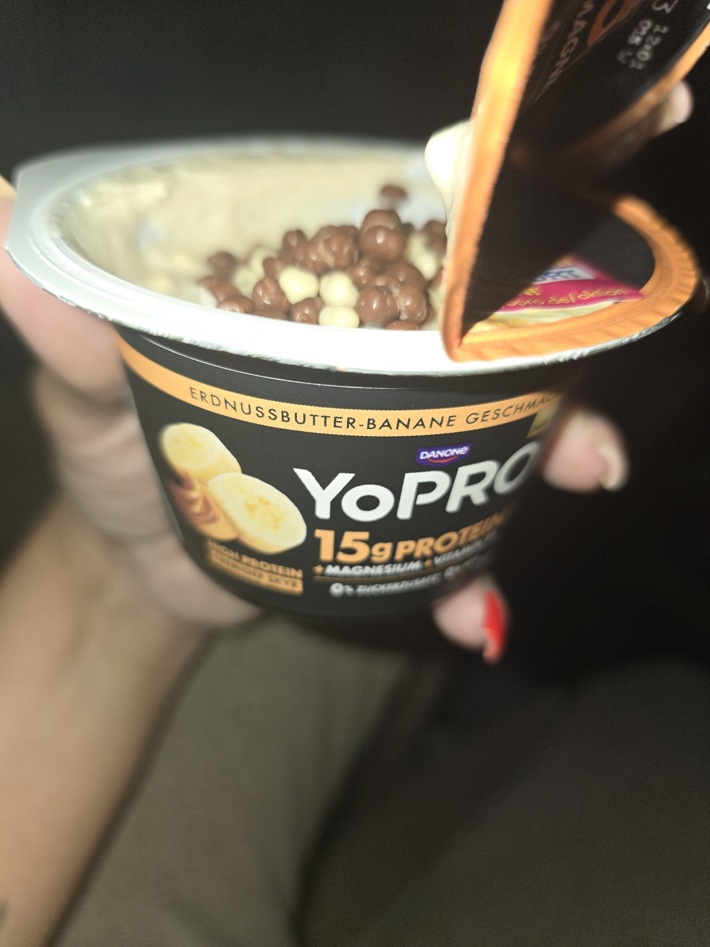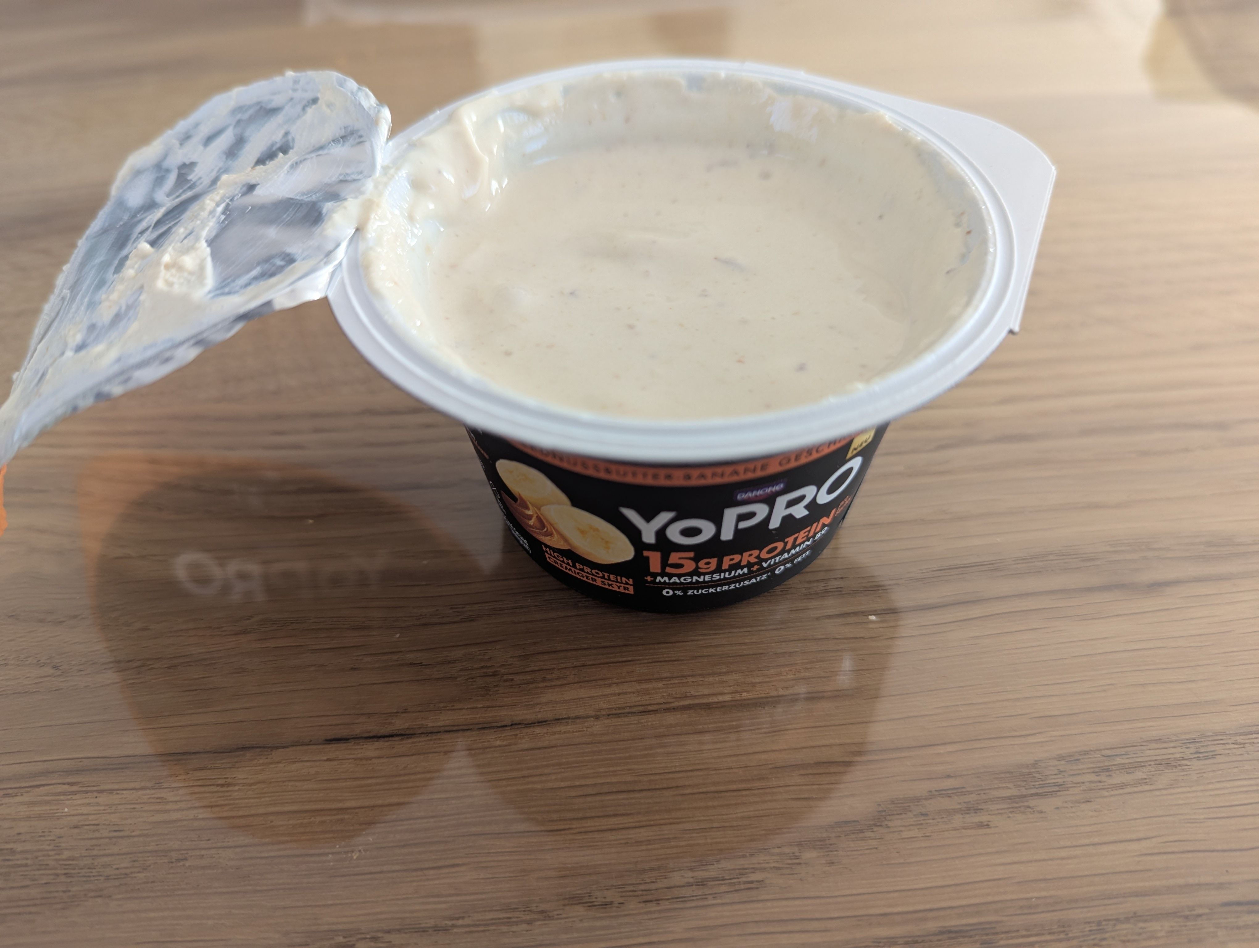 Ich habe den YoPRO Erdnussbutter Banane Skyr im Rahmen eines Produkttests ausprobiert. Die Konsistenz ist unglaublich cremig und angenehm weich – genau so, wie ich es mir bei einem Protein-Snack wünsche. Geschmacklich hat mich das Produkt ebenfalls überzeugt: weder künstlich noch übertrieben süß, sondern perfekt ausbalanciert. Die Erdnussbutter-Note kommt wunderbar zur Geltung und die Banane rundet das Ganze harmonisch ab. Dazu noch ein hoher Proteingehalt, einfach top. Ich habe als Topping eine frischen Banane, Leinsamen, Walnusskerne und Erdnussbutter verwendet. So lecker und so sättigend!