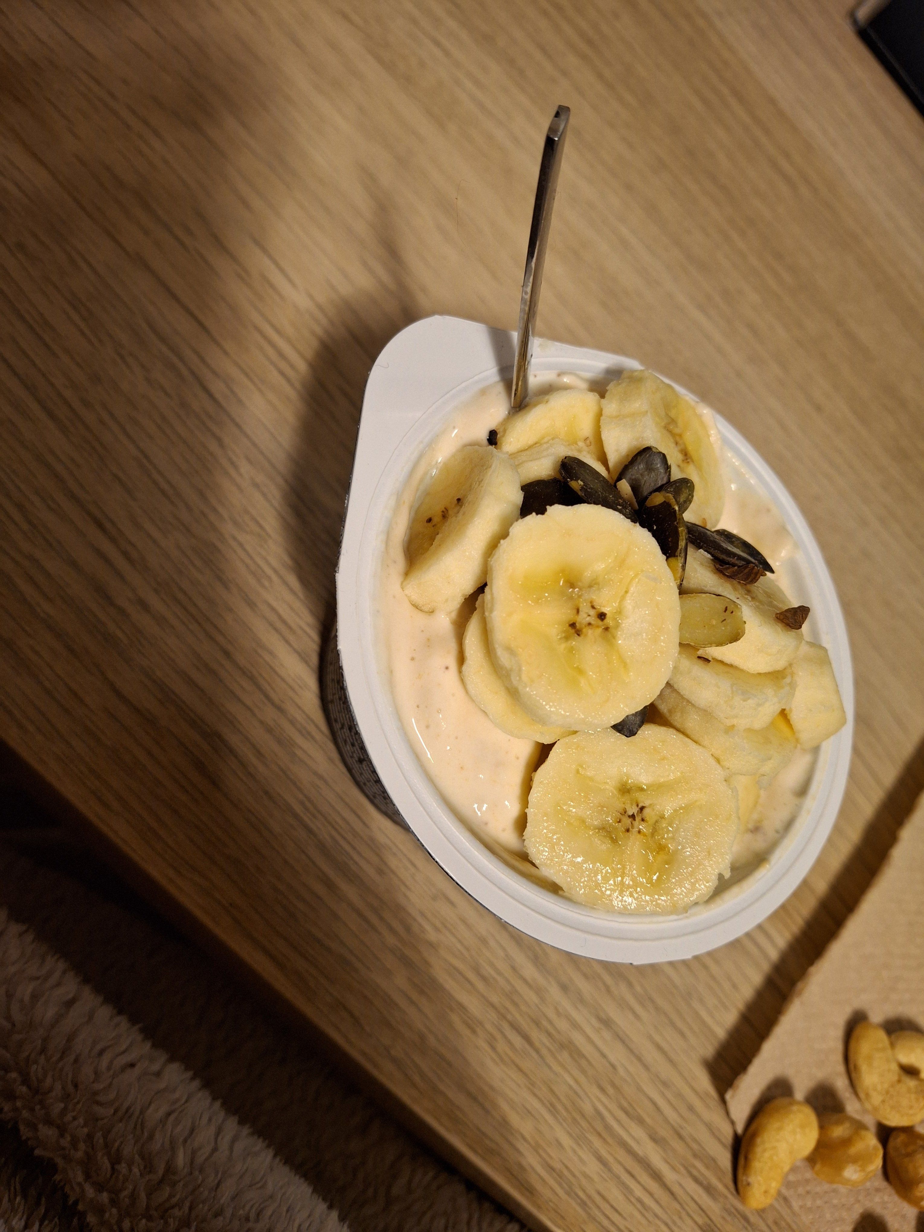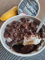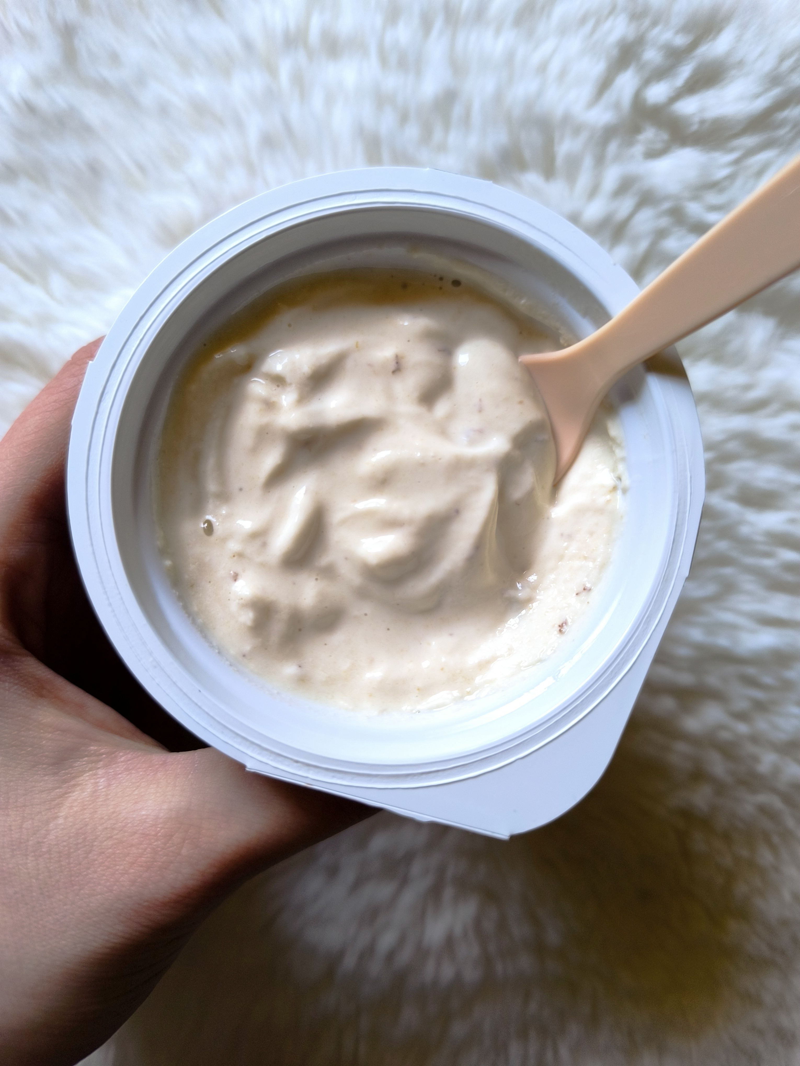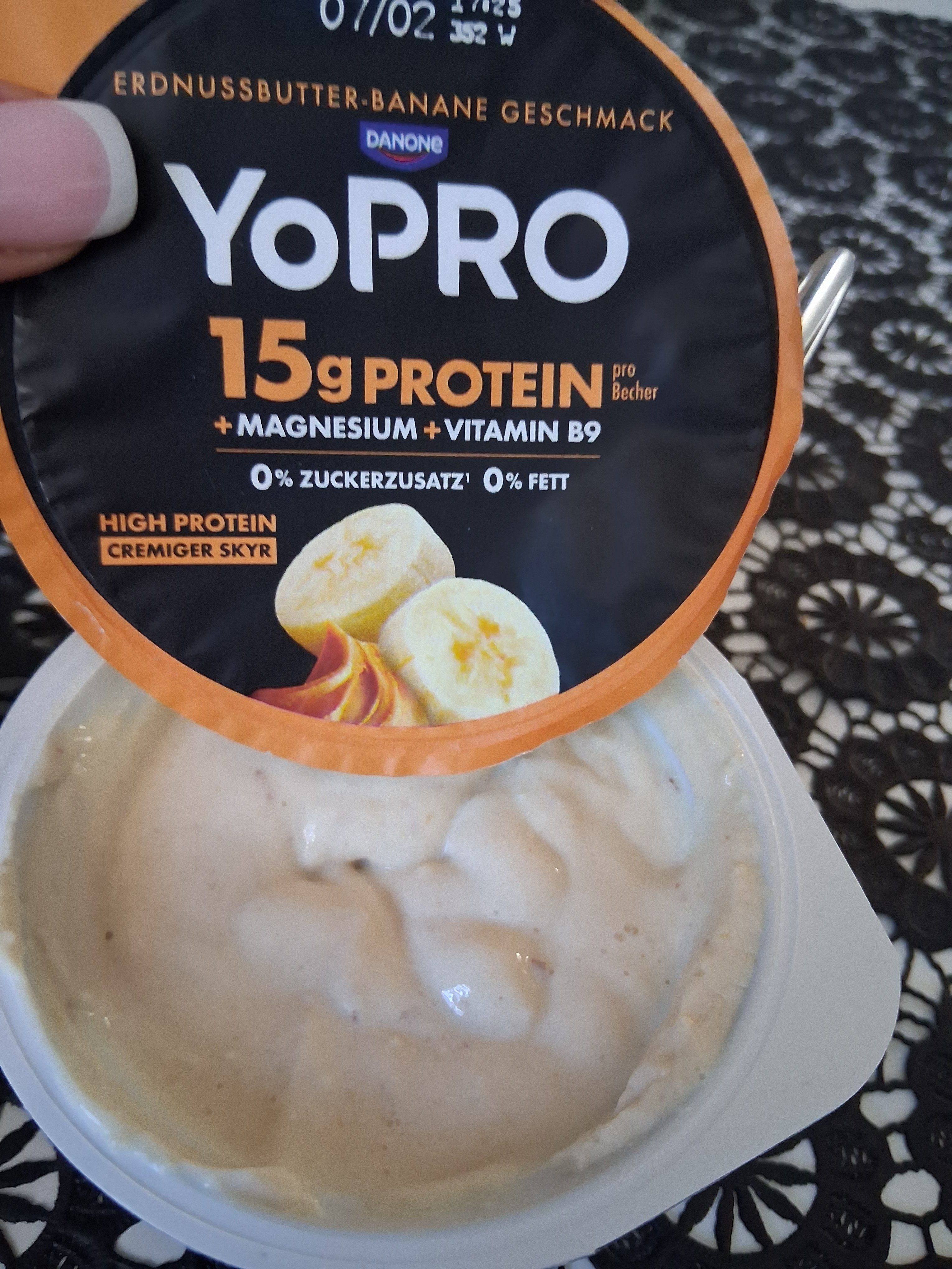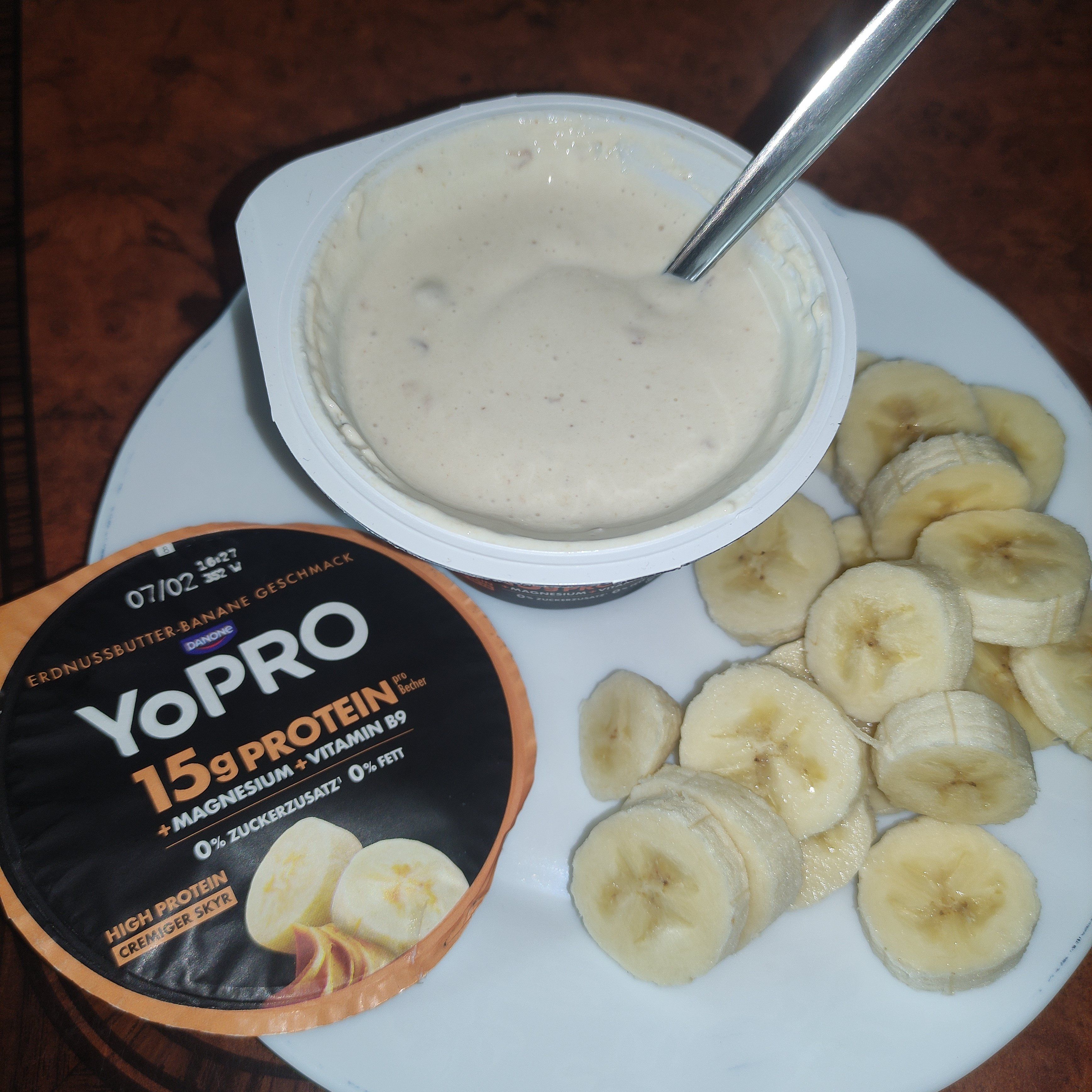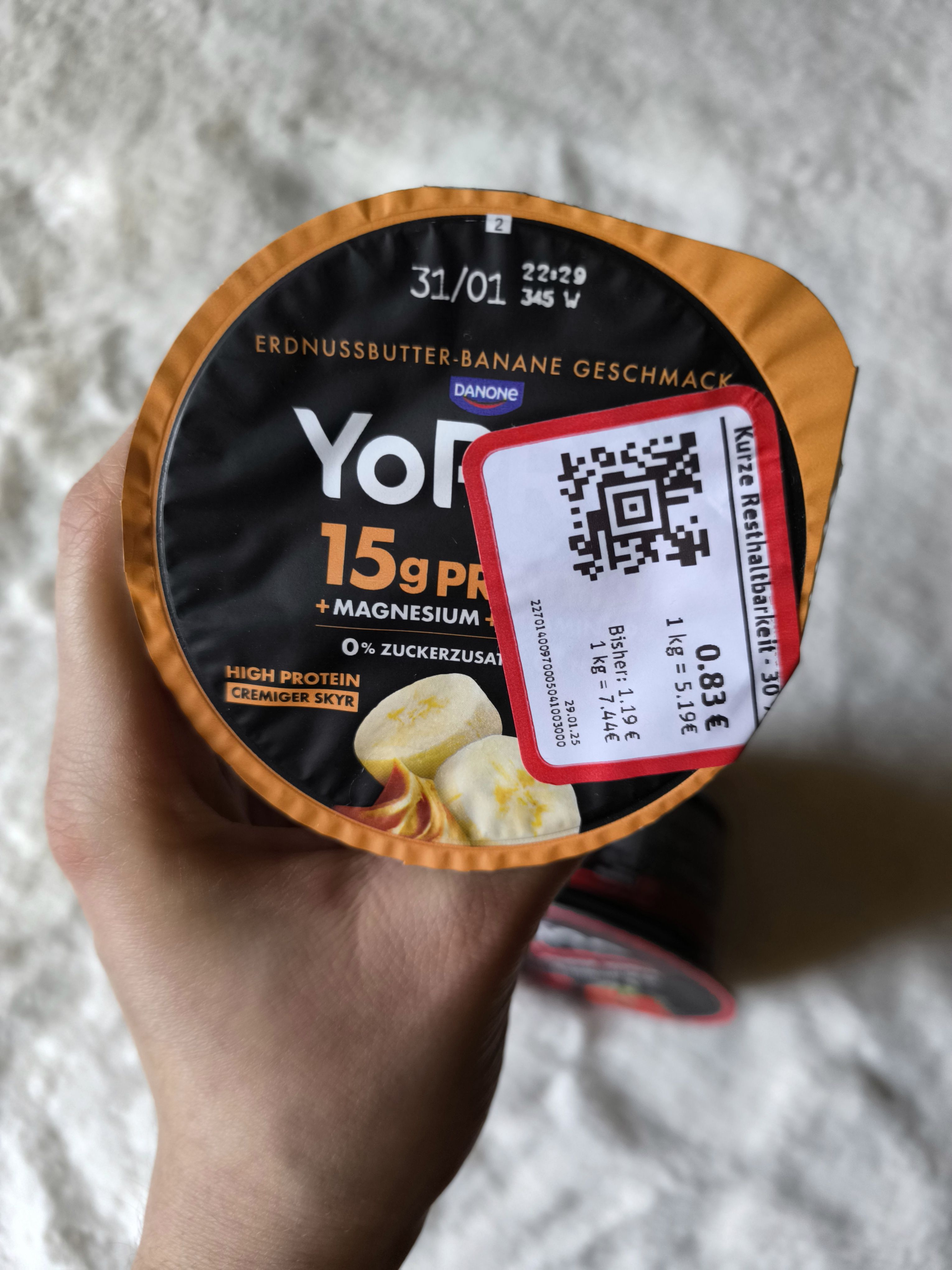 Ich habe den YoPRO Erdnussbutter Banane Skyr im Rahmen eines Produkttests ausprobiert. Die Konsistenz ist unglaublich cremig und angenehm weich – genau so, wie ich es mir bei einem Protein-Snack wünsche. Geschmacklich hat mich das Produkt ebenfalls überzeugt: weder künstlich noch übertrieben süß, sondern perfekt ausbalanciert. Die Erdnussbutter-Note kommt wunderbar zur Geltung und die Banane rundet das Ganze harmonisch ab. Dazu noch ein hoher Proteingehalt, einfach top. Ich habe als Topping eine frischen Banane, Leinsamen, Walnusskerne und Erdnussbutter verwendet. So lecker und so sättigend!