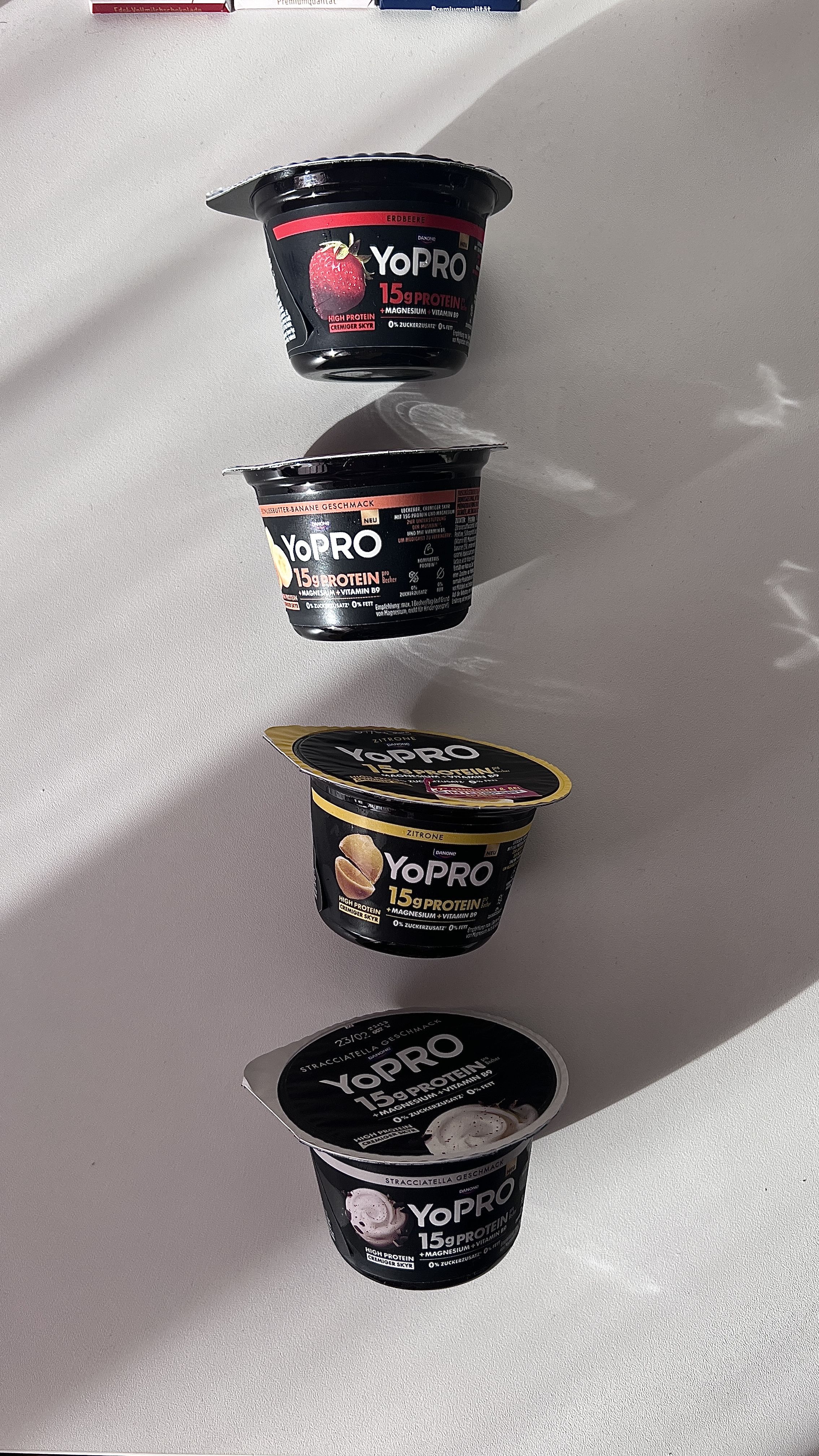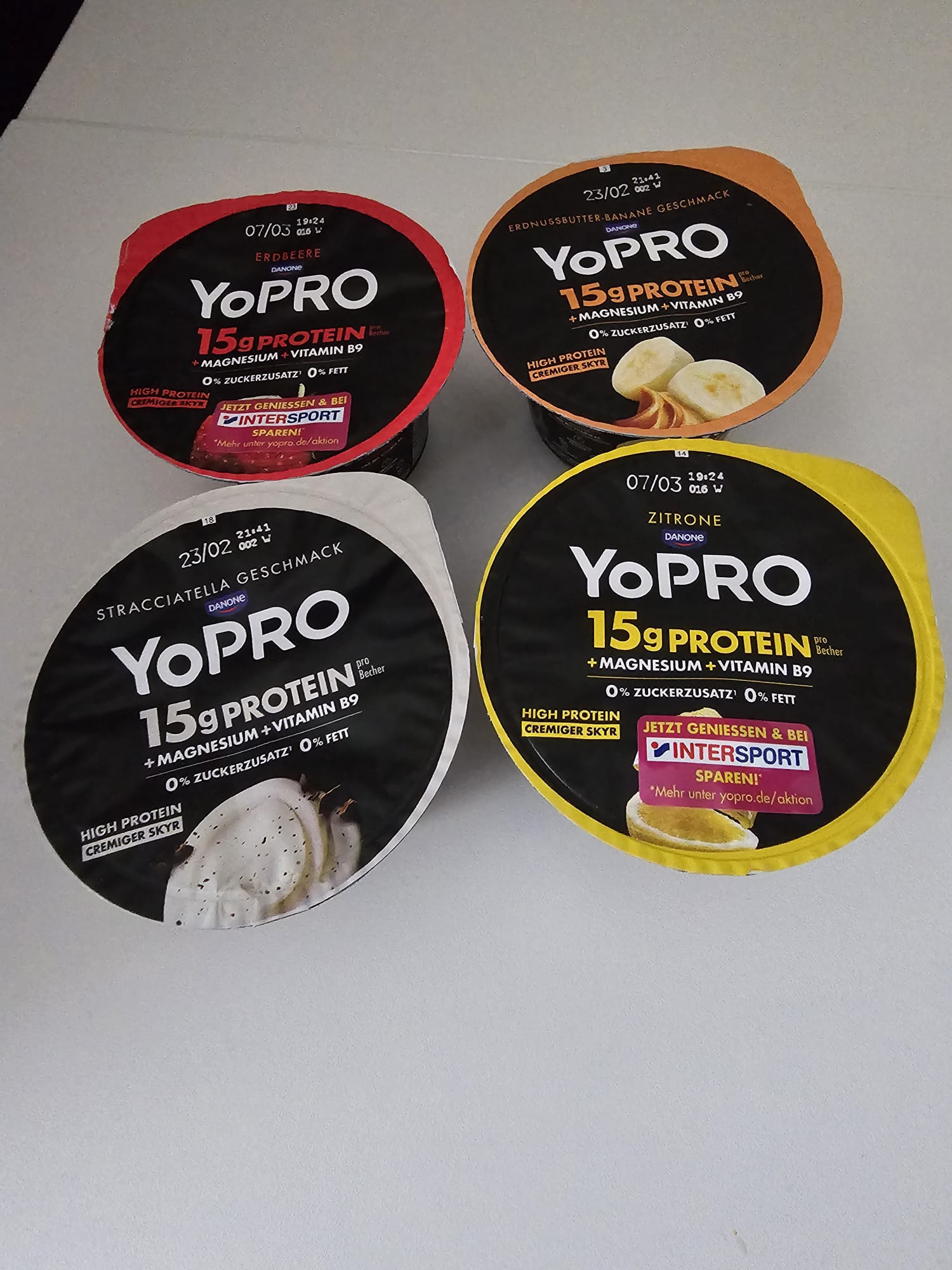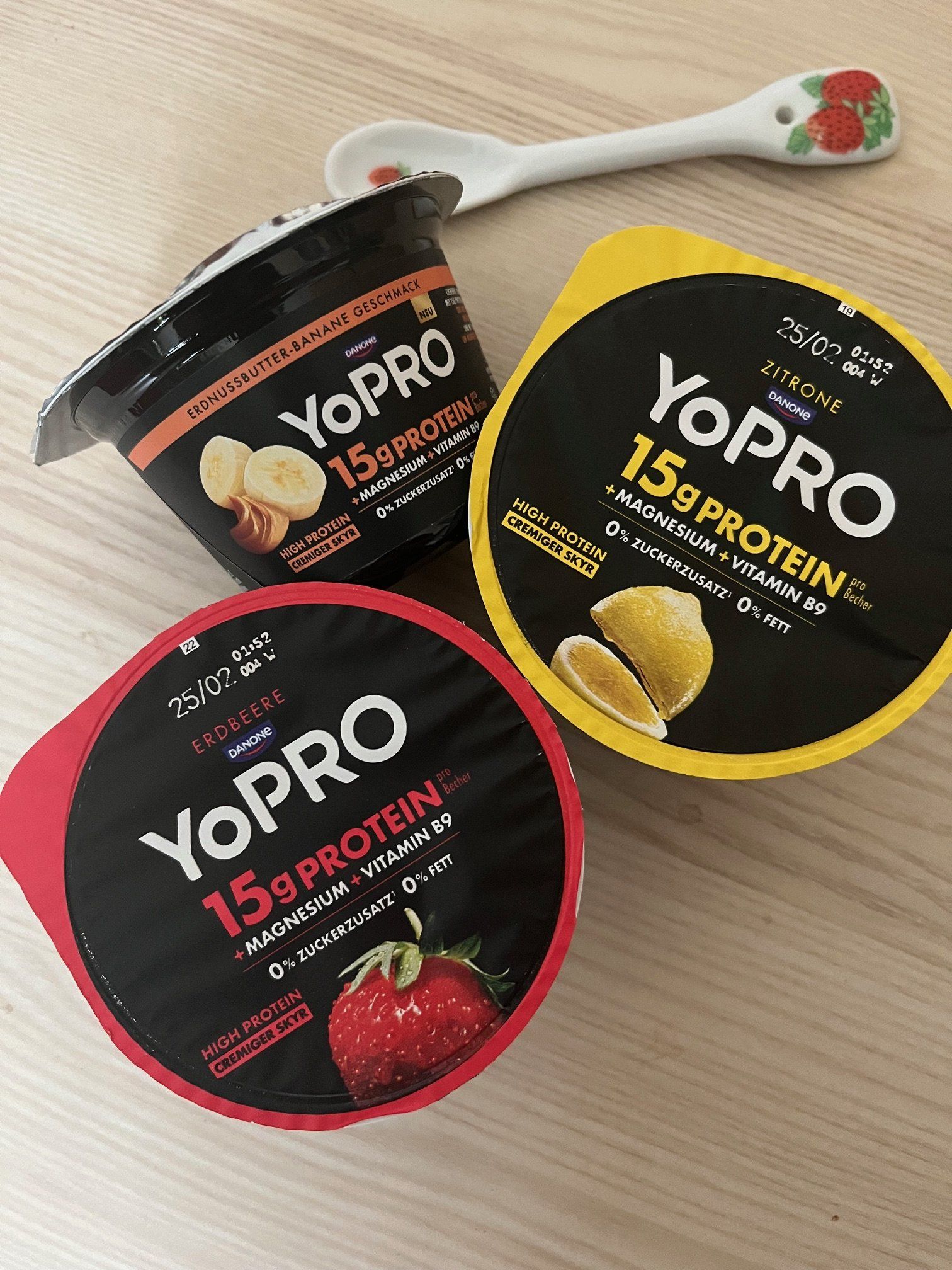 Die YoPROs schmecken mir sehr gut, haben gute Inhaltsstoffe und sind schön cremig.