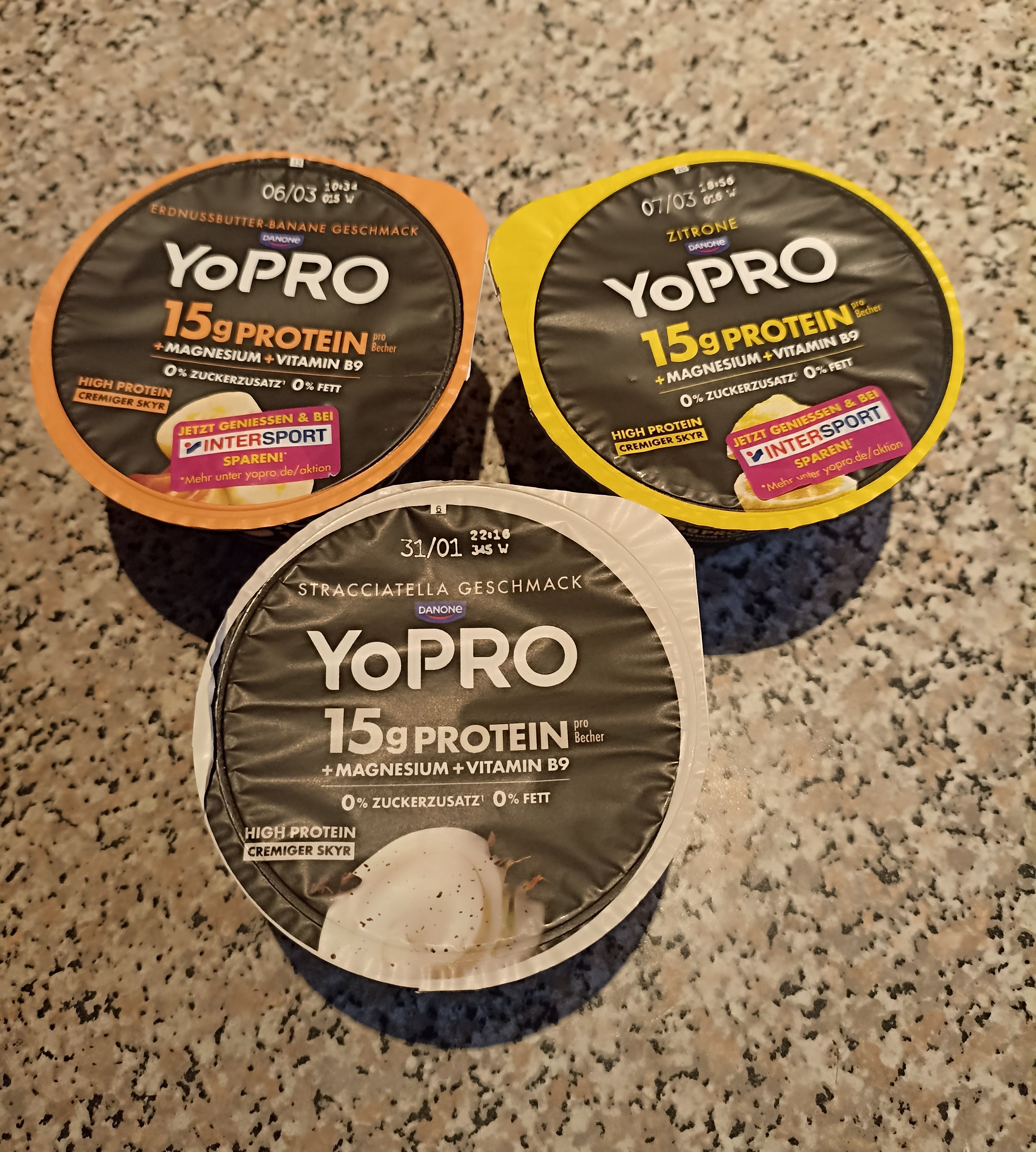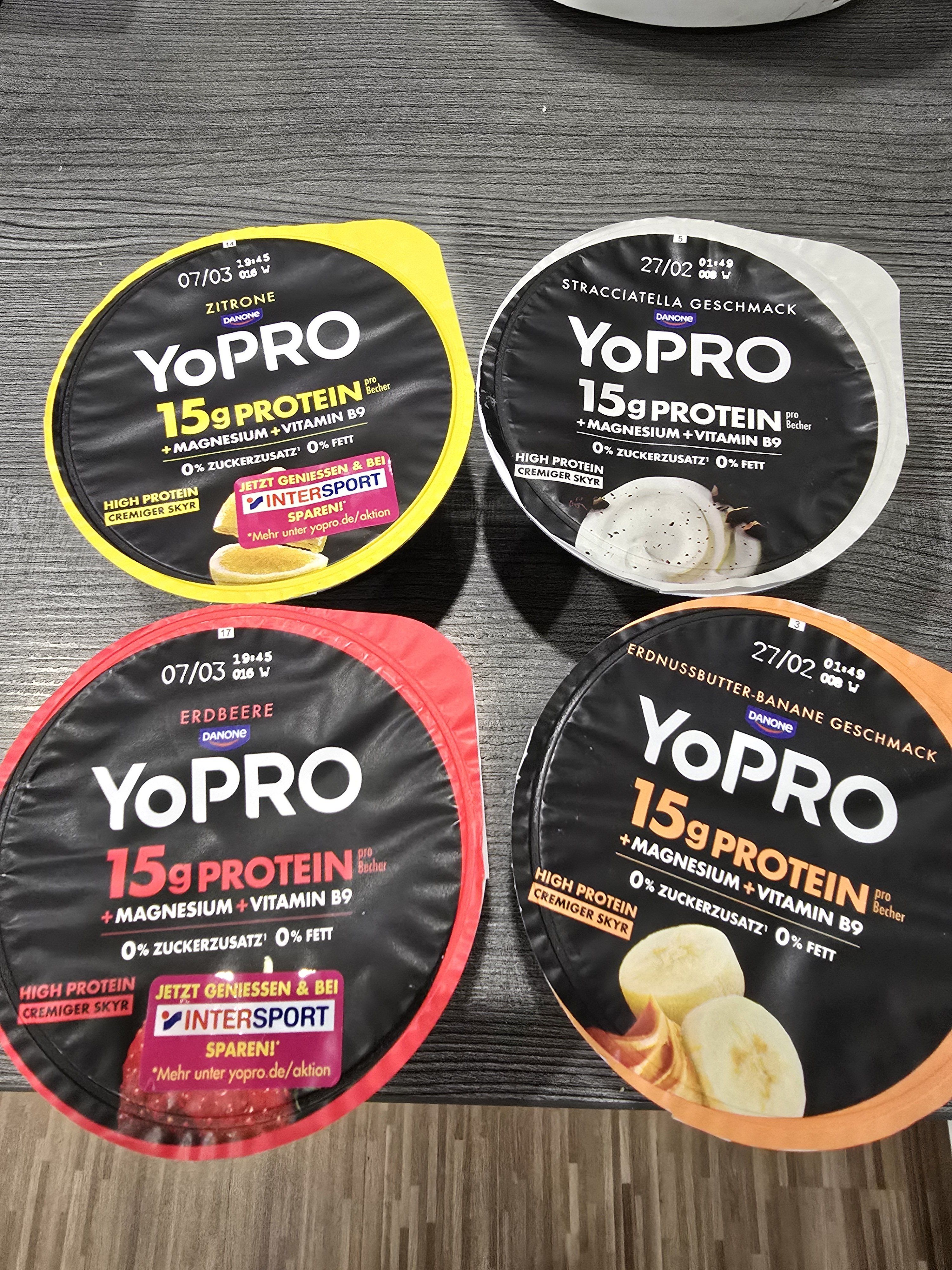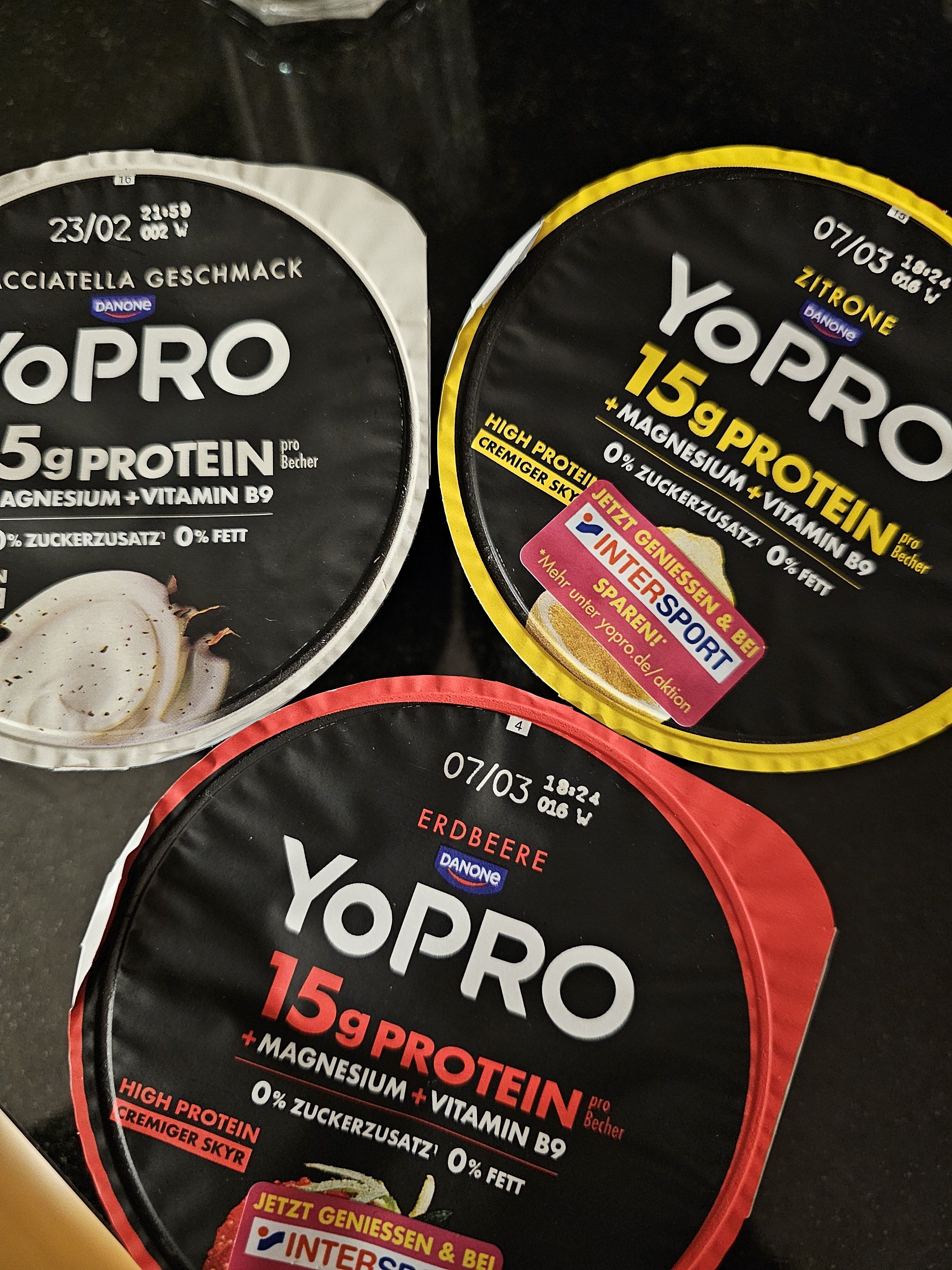 Die YoPROs schmecken mir sehr gut, haben gute Inhaltsstoffe und sind schön cremig.