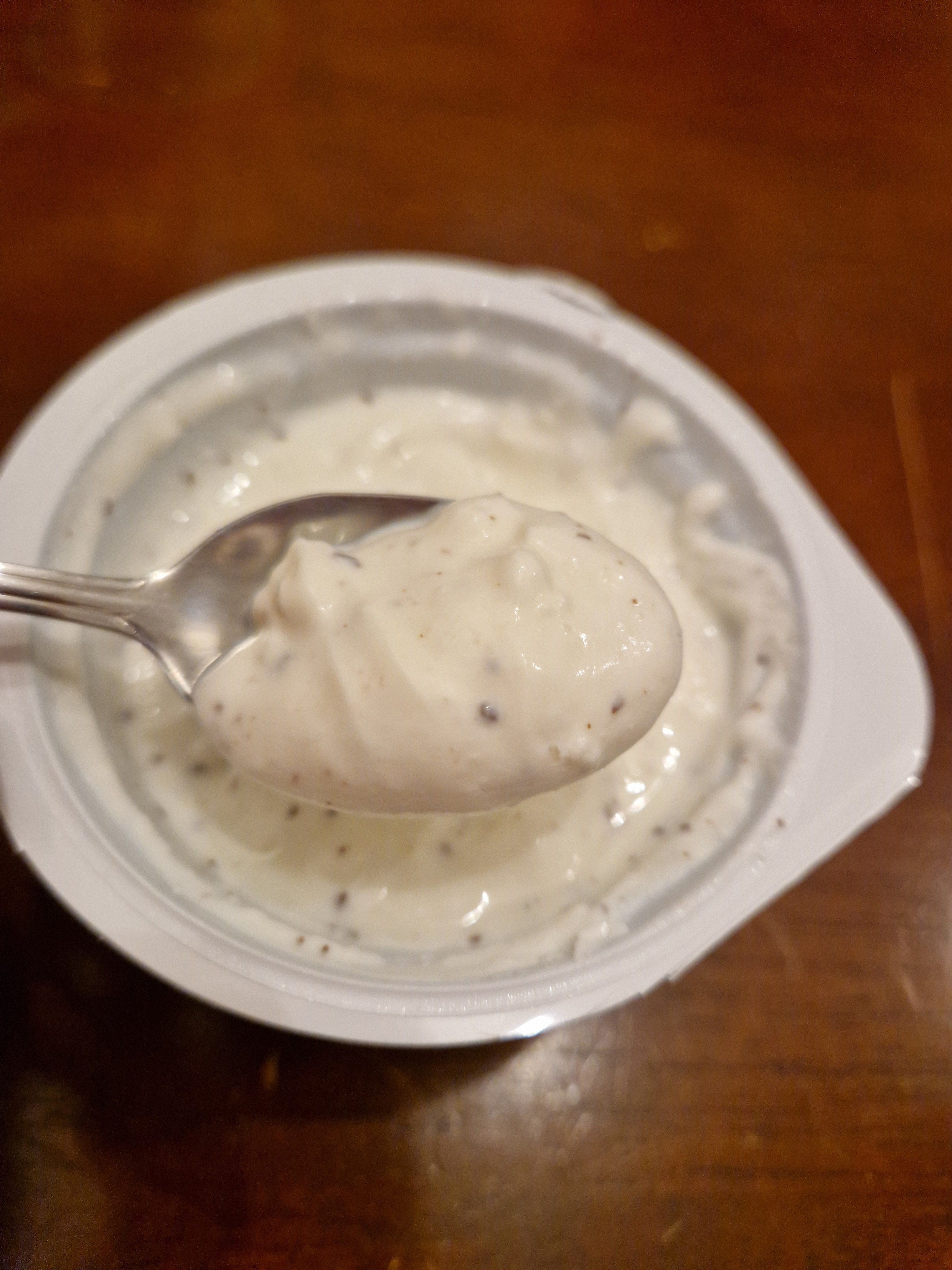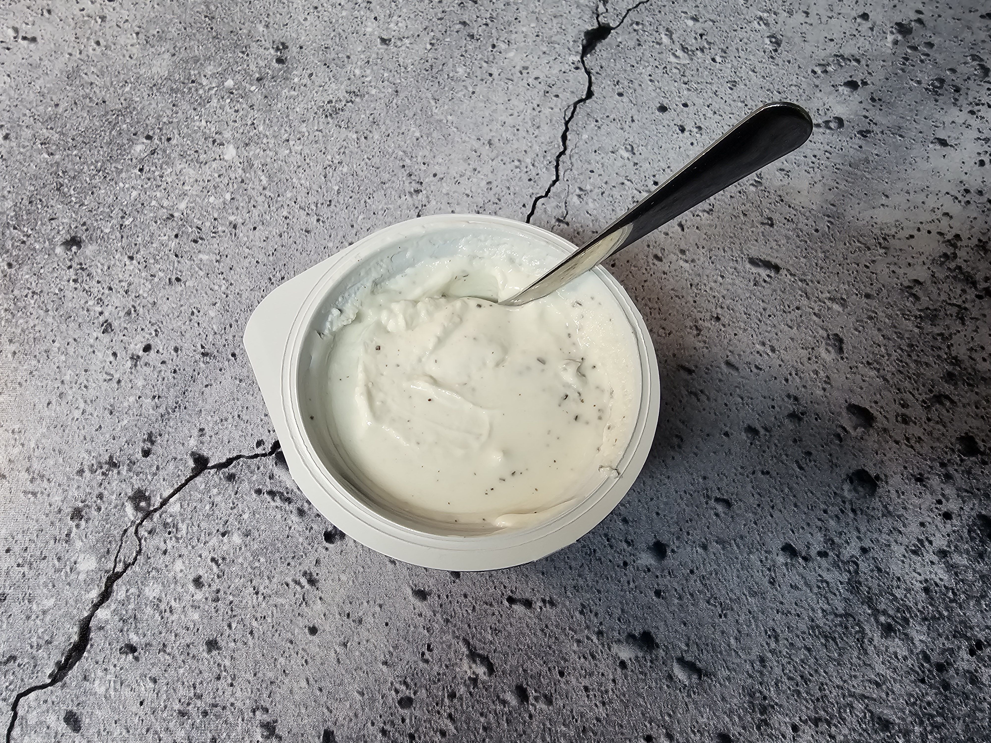 Ich liebe Skyr und esse ihn meist natur. Gerne greife ich auch mal zu anderen Geschmacksrichtungen. Interessant fand ich ERDNUSSBUTTER-BANANE. Der Bananengeschmack war ganz ok, Erdnussbutter dagegen war kaum zu schmecken; schade! Eigentlich brauche ich keine so vielen Zusatzstoffe, auch wenn sie der Gesundheit dienen sollen. Was ich aber nicht brauche sind Süssungsmittel, die gesundheitlich manchmal nicht unbedenklich sind. Studien zur Sicherheit von Sucralose deuten auf verschiedene gesundheitliche Risiken hin, darunter eine Beeinträchtigung der Insulinempfindlichkeit und Veränderungen im Darmmikrobiom. Das heißt Diabetiker oder Menschen mit Darmproblemen sollten hier Abstand halten.