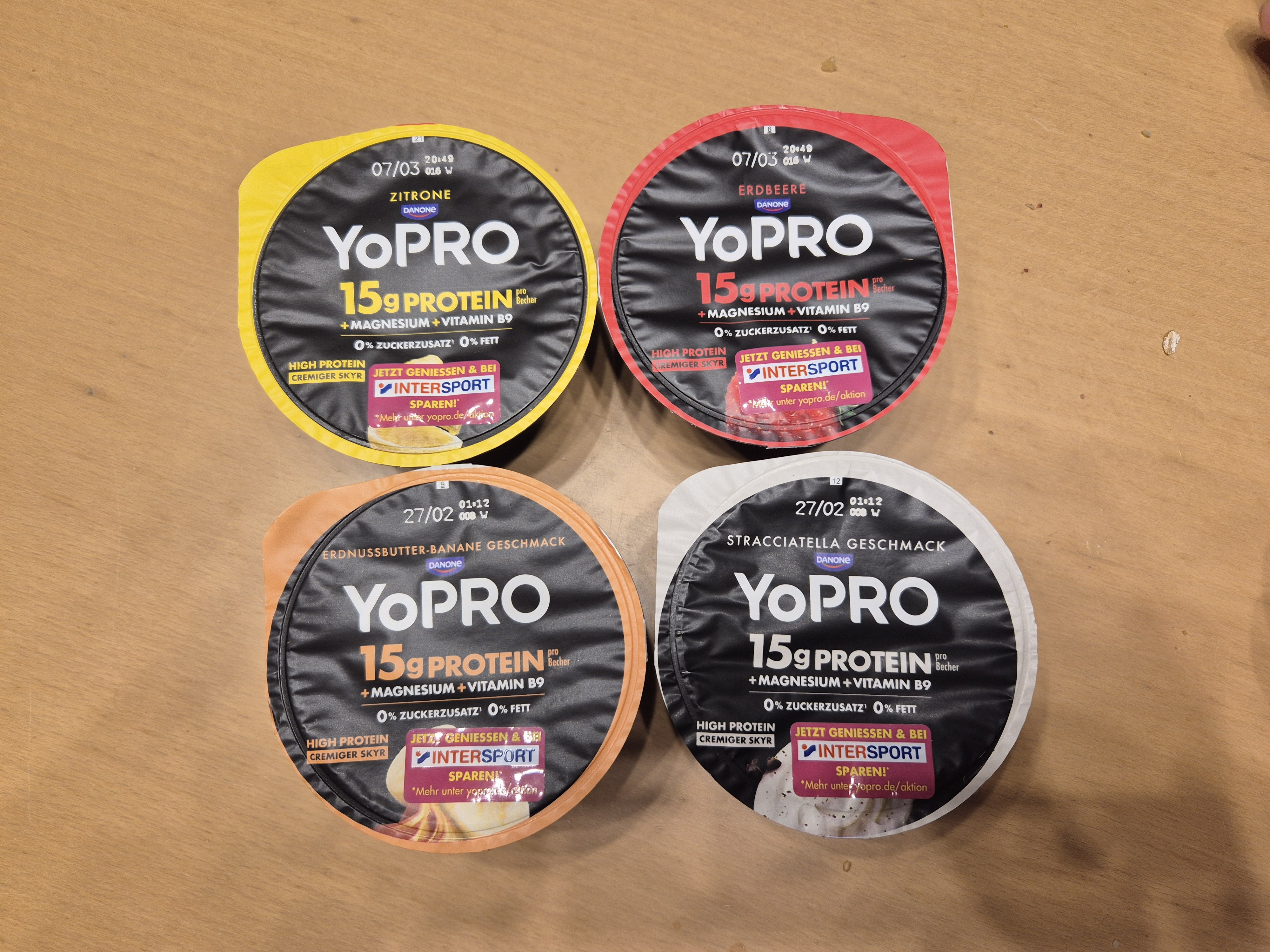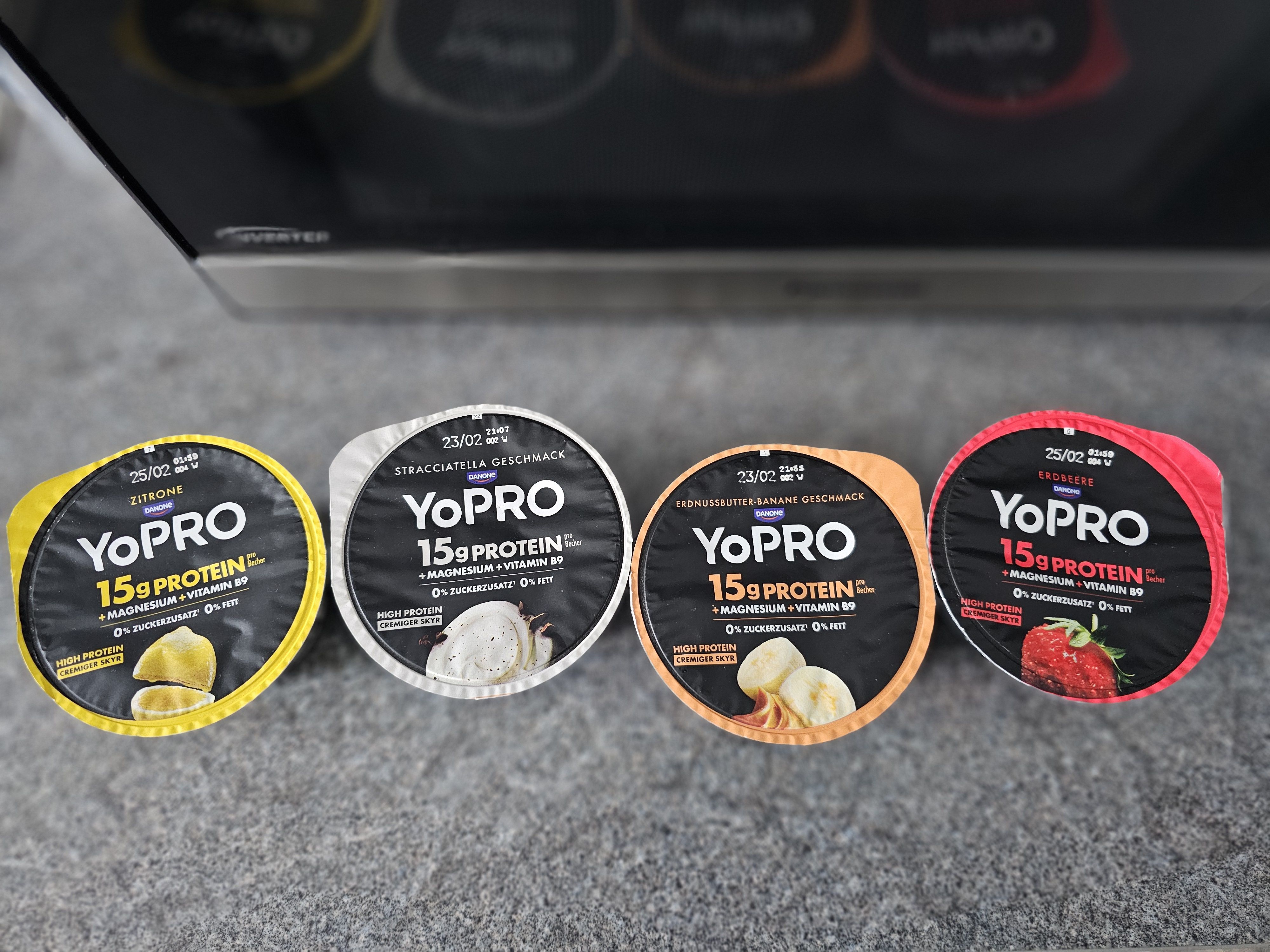Die YoPRO sind sehr lecker, die Konsistenz ist angenehm und die Nährwerte sind gut.