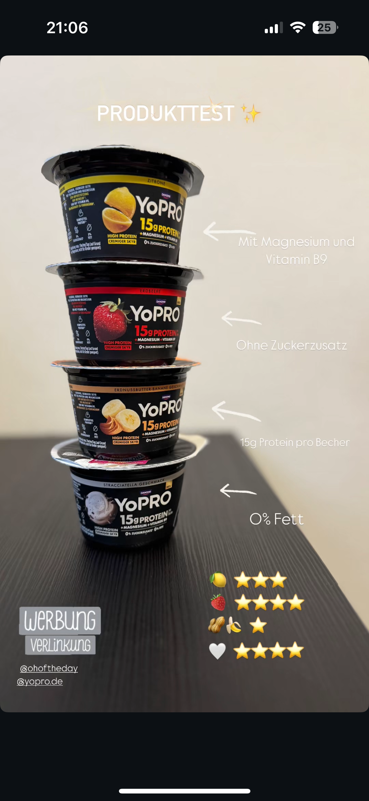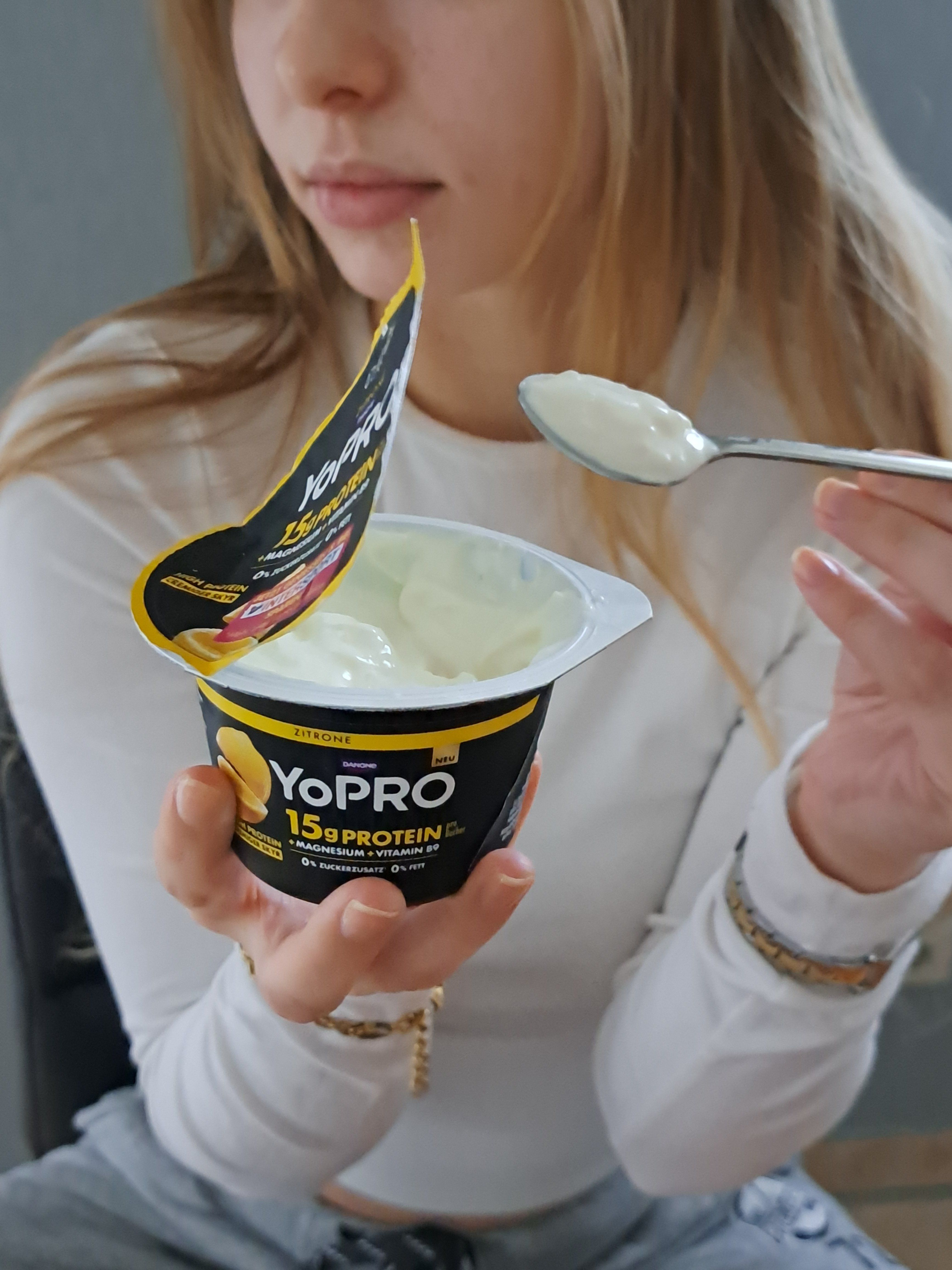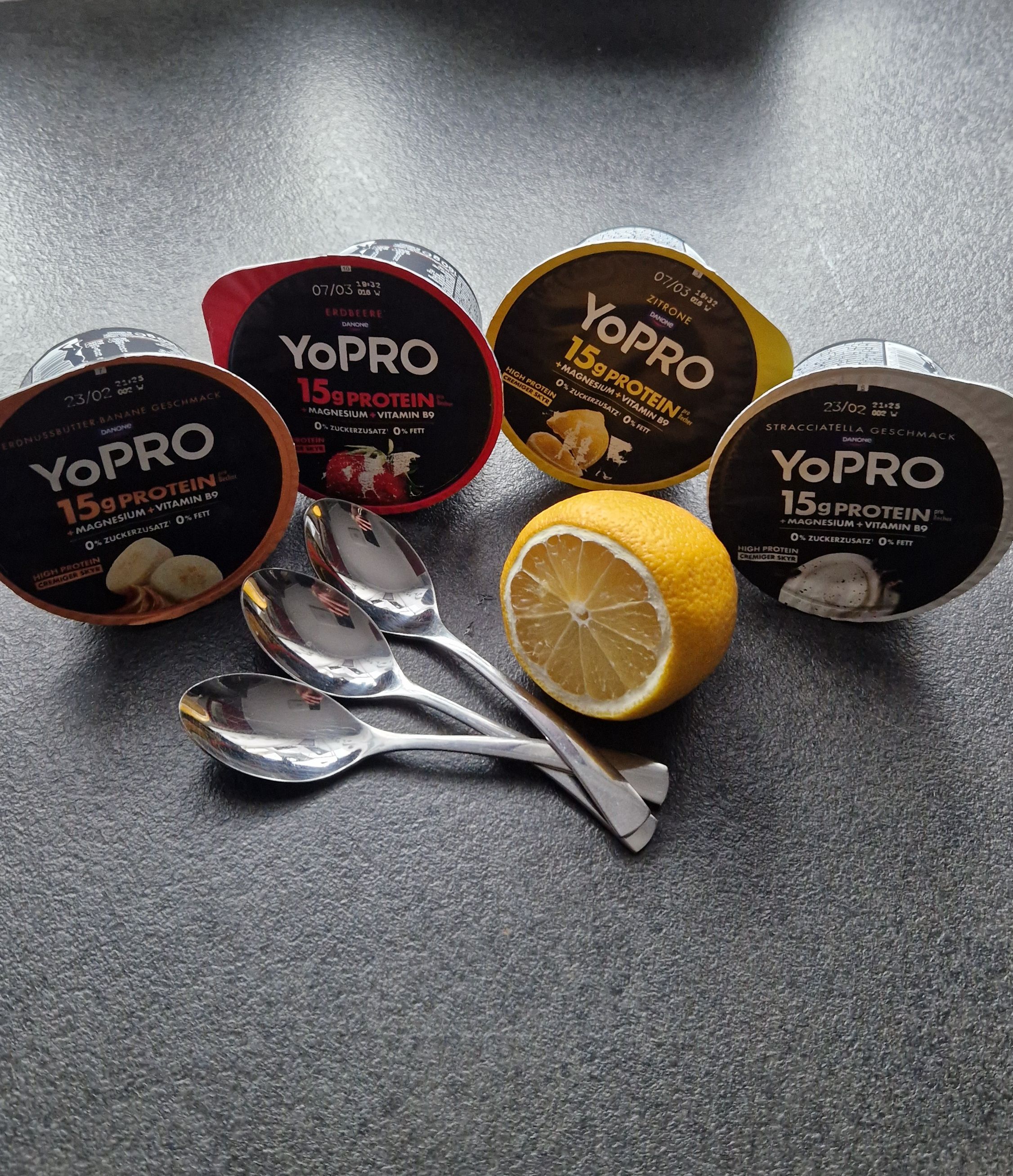 Ich finde YoPro super lecker. Nicht so süß aber frisch und fruchtig - ein perfektes Frühstück oder auch als kleiner Snack zwischendrin perfekt. Ich persönlich finde die Sorte Zitrone am leckersten, mein großer Sohn liebt Erdbeer. Die YoPro Produkte sind alle super cremig und schmecken wirklich sehr sehr gut