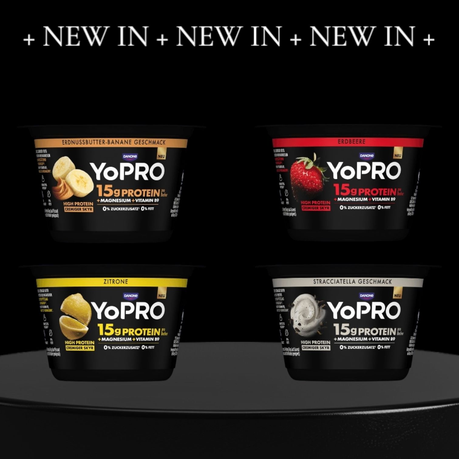 Ich liebe die YoPRO Skyrs! Man kann sie super zum Frühstück, als Snack oder zum Backen verwenden! Die Sorte Zitrone schmeckt super frisch und authentisch, Stracciatella ist super wenn man Lust auf ein bisschen Crunch und Schoko hat, Erdnussbutter-Banane schmeckt ausgefallen und ist mal was anderes, Erdbeer schmeckt gut aber ist eine sehr klassische Sorte.
