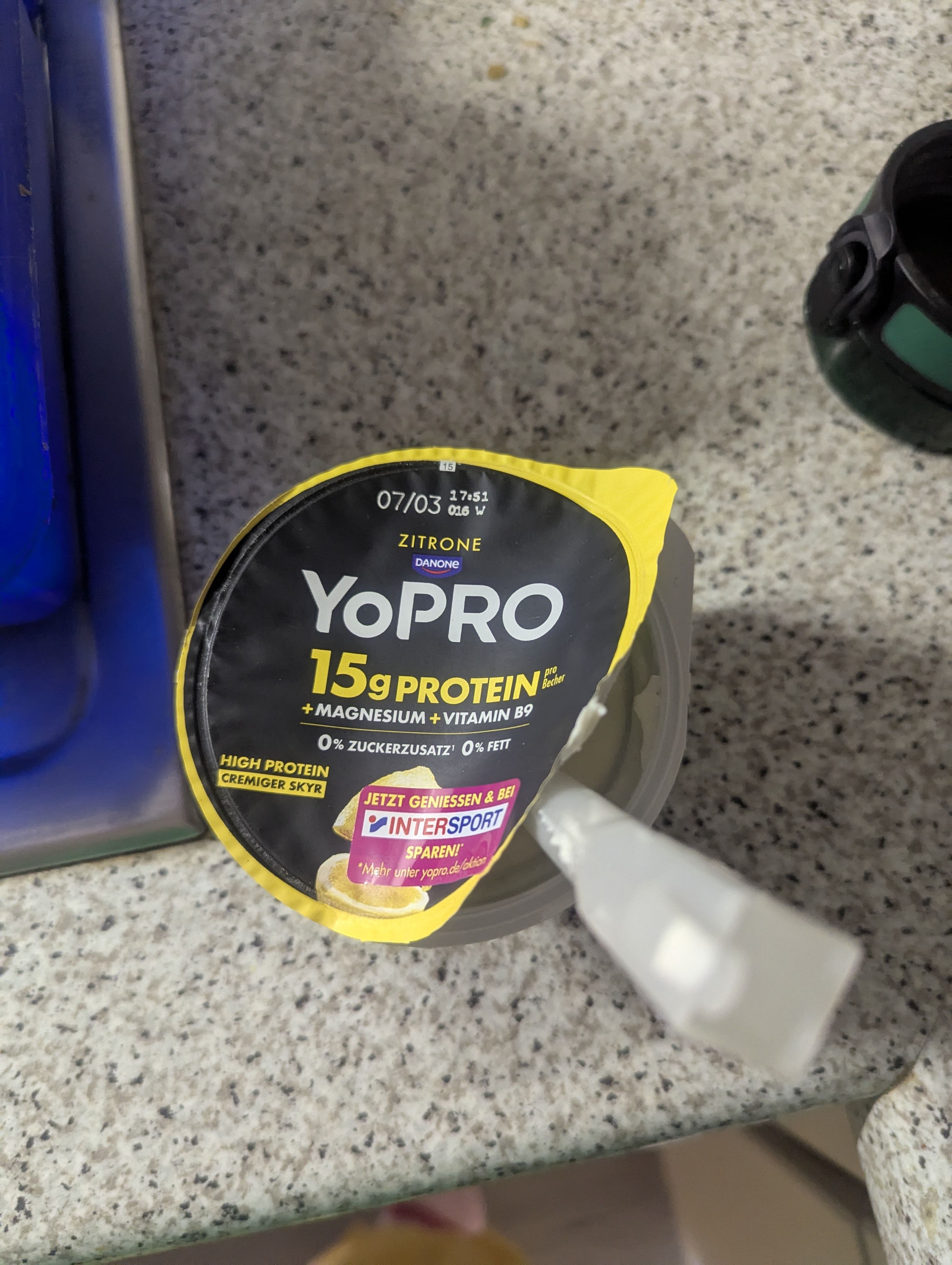 Dieses Mal bewerte ich den YoPRO Zitrone High Protein Skyr. Die Konsistenz ist unglaublich cremig, viel angenehmer als bei manch anderen High-Protein-Produkten. Der erfrischende Zitronengeschmack sorgt für einen tollen, fruchtigen Genuss, der weder zu süß noch zu sauer wirkt. Perfekt als proteinreicher Snack nach dem Sport oder als leichte Mahlzeit zwischendurch. Zudem überzeugt der hohe Eiweißgehalt – ideal für eine bewusste Ernährung. Übrigens hat es die perfekte Portionsgröße! 😉
