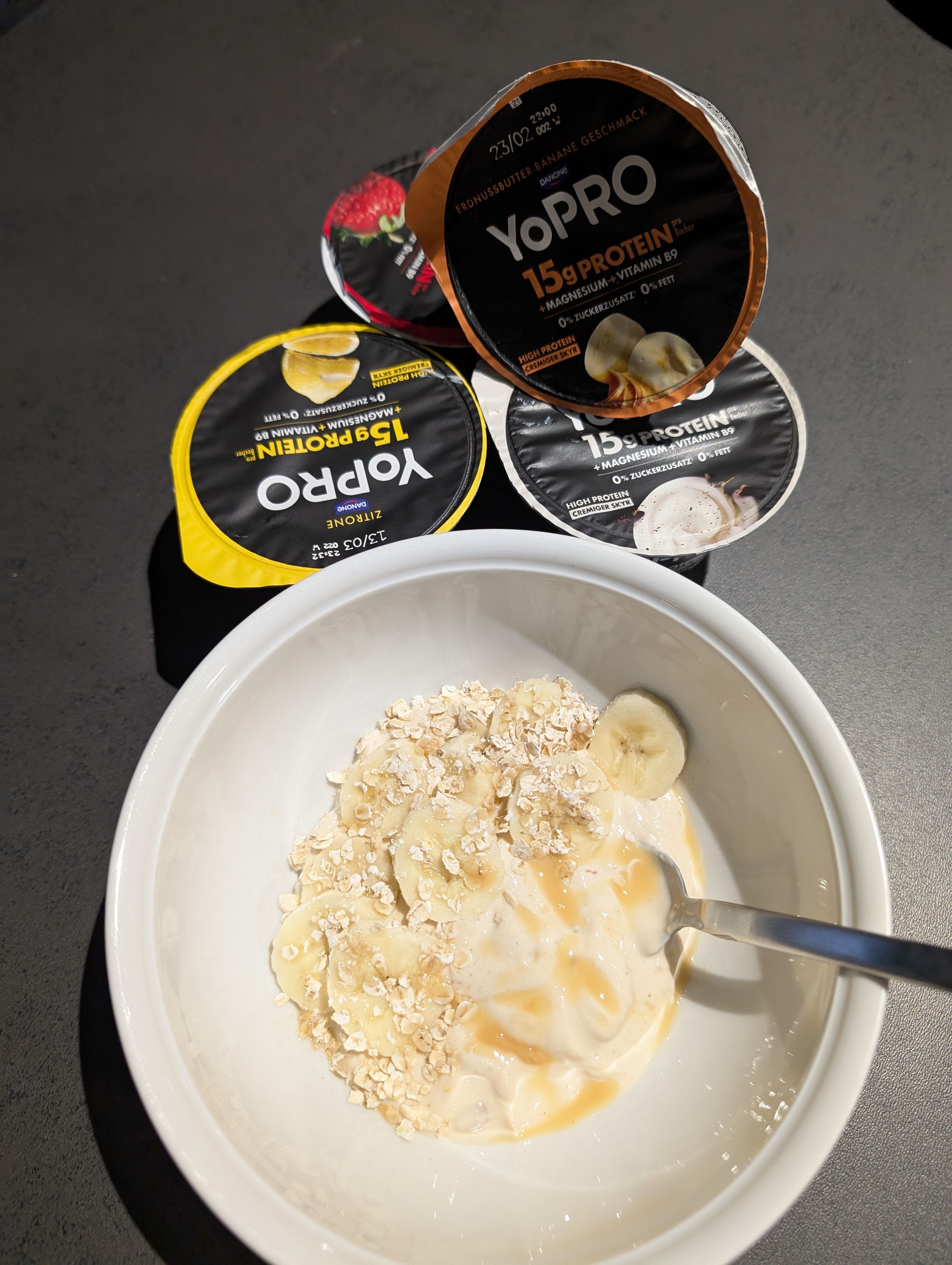 Ich habe alle high protein Joghurts mit etwas Müsli gemischt und Obst dazugegeben, was eine leckere zwischen mahlzeit ergab.